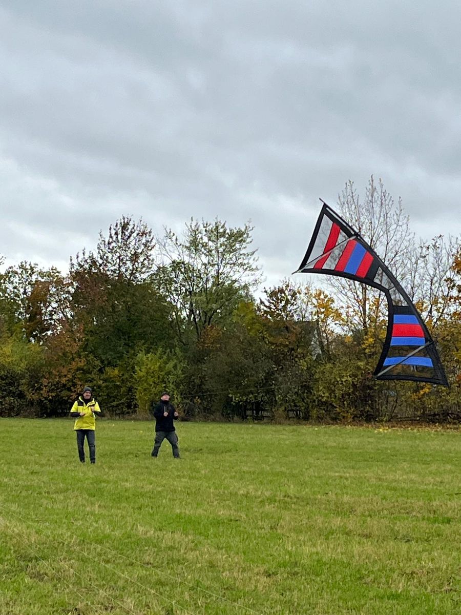 Gestern bei einem kleinen regionalem Drachenfest , wo ich mit Flicki und meiner Freundin 13.30 noch alleine war, weil es bis 12.30 regnete, ausserdem starker Hackwind war. Nach ner knappen H , als wir zusammen packten, kamen noch ein paar Familien mit Kinderdrachen.