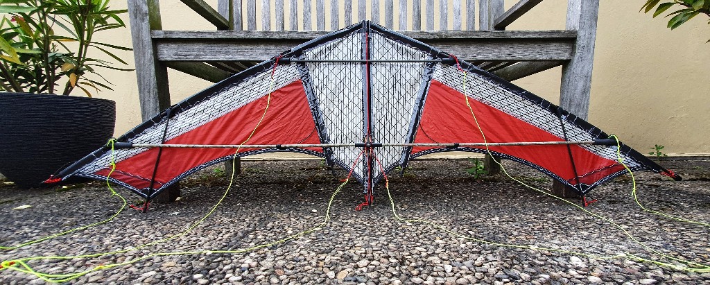 2. Der Drachen hat ja einen Flexkiel und eine Abspannung von der Nase zum Kielende. Ist es geplant, dass diese Abspannung eine feste Länge hat und nicht abgespannt wird ? Ist es richtig, dass diese Abspannung das Kreuz über den Querspreizen passiert ?