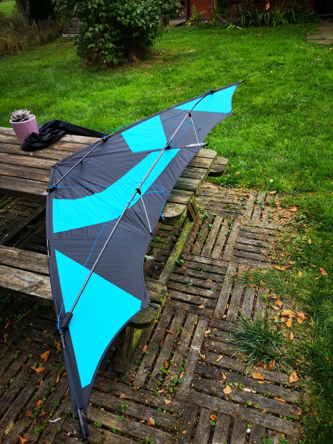 erstmal Glückwunsch zu dem tollen Kite. Der Devil Wing 2.5 ist definitiv kein Spielzeug mehr, haste ja schon gemerkt. Da Dir der Start nicht so einfach gefallen ist, bist Du jetzt einfach mal den einfachen weg gegangen, dadurch ging der Start leichter, macht man auch so wenn weniger Wind anliegt. Tatsächlich ist der Devil Wing auch etwas weniger einfach zu starten, daher solltest Du das ggf. üben, zur Not mit Anwerfer. Wenn Du merkst, du bekommst ihn nicht gestartet, lieber die Handles wegwerfen anstatt das Teil in den Boden zu rammen. Ein Nachteil hat die sehr flache Einstellung bei zu viel Wind (für die Einstellung). Der ganze Druck verteilt sich unter Umständen auf das Gestänge und Du machst Dir vielleicht ne Spreize oder nen Kiel kaputt. Steiler stellen (oben länger) hat natürlich auch den Effekt, dass die Kiste gleich mal mehr zieht. Ab Windstärke 5 ca. beißt der 2.5er aber nochmal ganz anders zu, da solltest Du auch etwas aufpassen.
