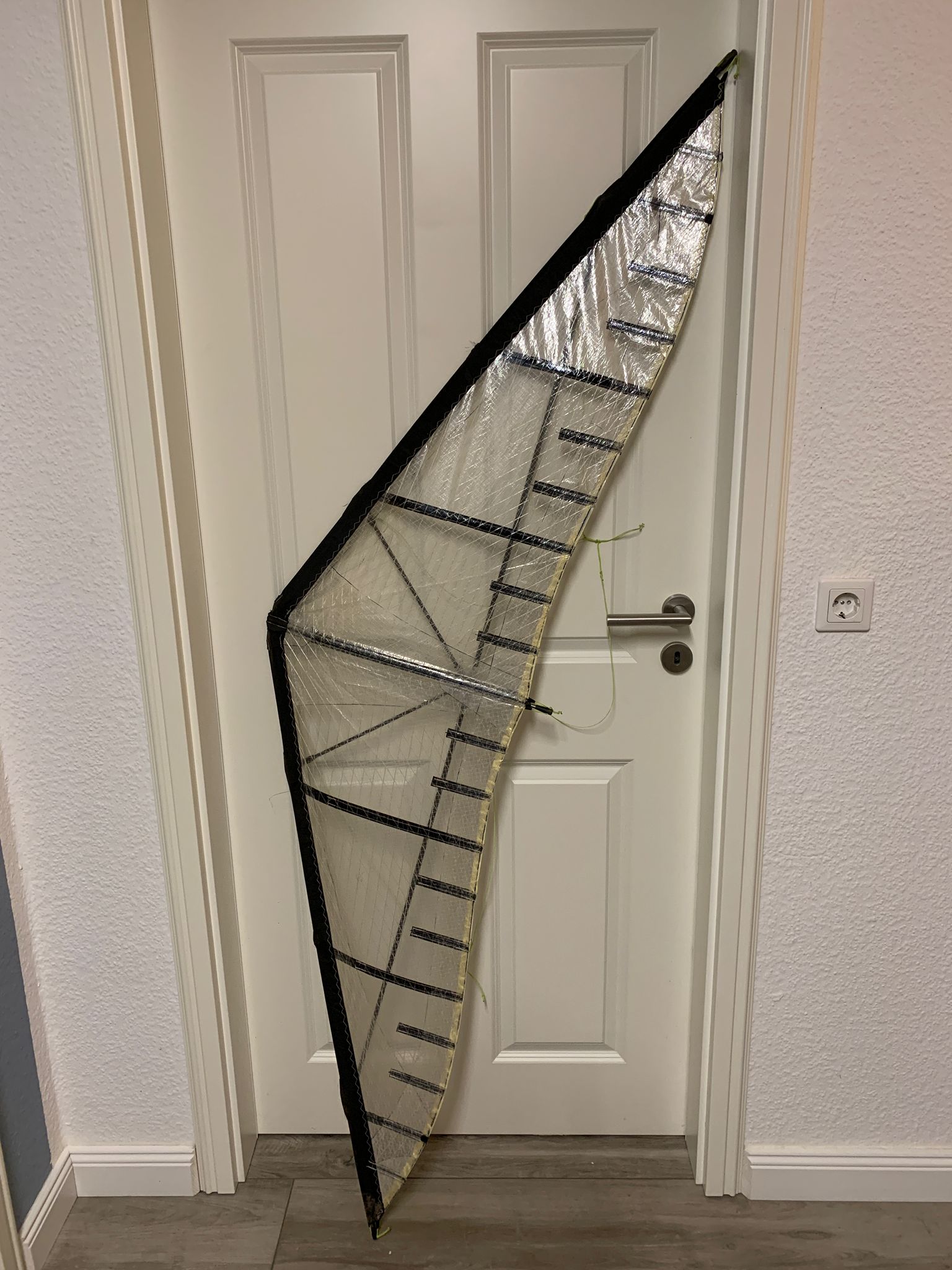 Ich hatte damals mit ihm geschrieben und er hat mir dieses Segel angeboten. An den Markierungen auf dem Mylar ist erkennbar, dass es wohl ein Prototyp war, jedenfalls hat er es damit begründet. Optisch ist das Segel nicht so toll, fliegen soll er dafür umso besser. Ich hoffe es klappt...