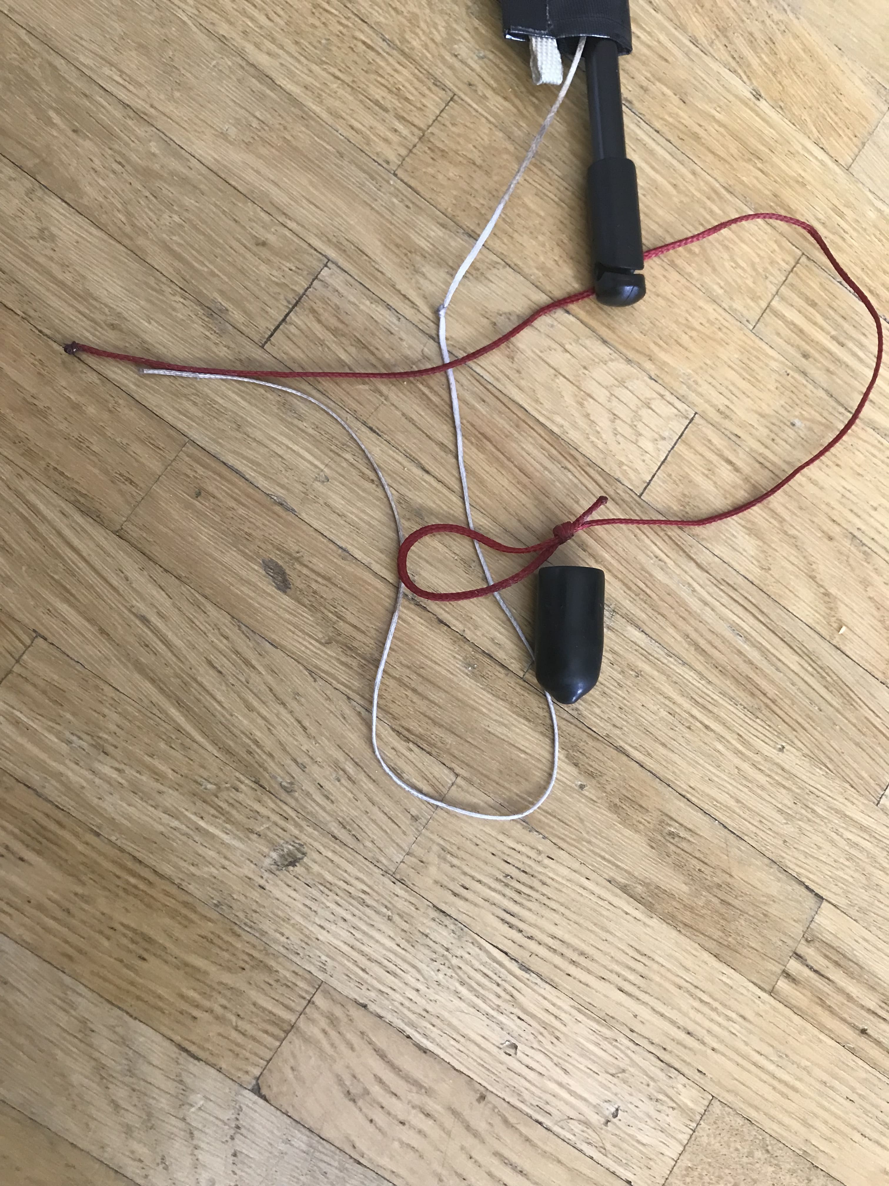 Endkappe vor Kopf ein Loch machen und Leinen heraus