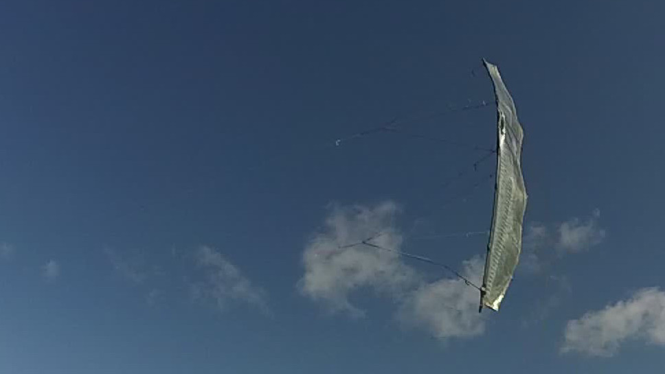 Die Spannung der Powerleinen ist noch nicht ganz optimal. Sie sollten die Schleppkante ein wenig mehr anziehen. In Kombination mit dem 2mm GFK sollte das das Segel auch flacher ziehen (bringt auch nochmal einiges mehr an Druck ins Segel!) und ja die Flügelspitzen sollen etwas nach hinten wegstehen -> finale Abströmkante.