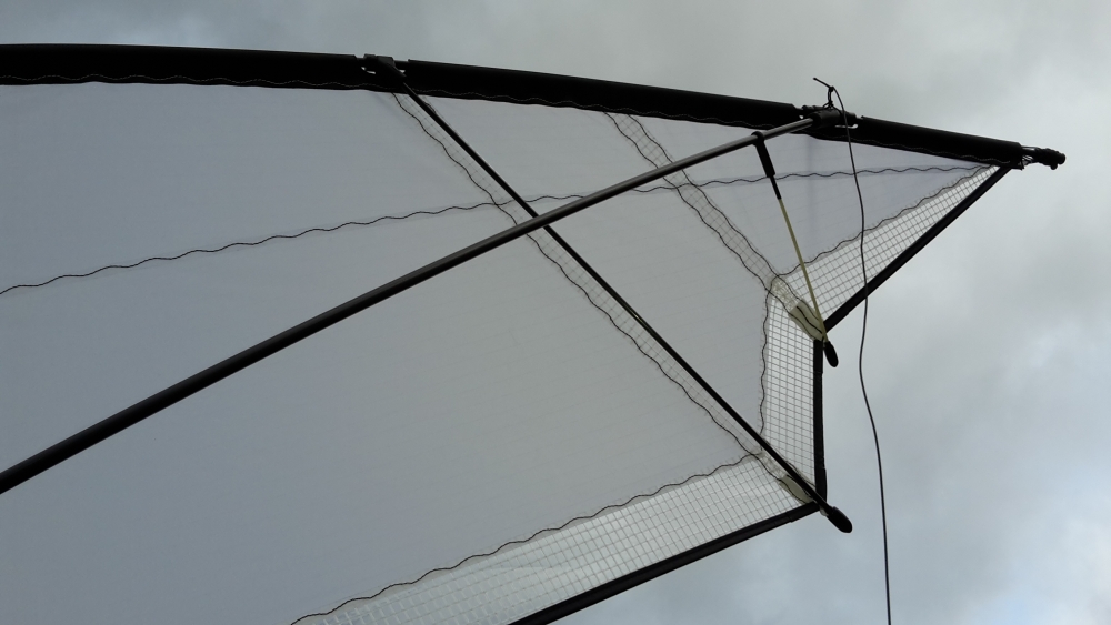 heute war es endlich so weit. Meine neue Schantalle durfte heute bei 6bft ihren ersten Flug absolvieren. Erstflug mache ich immer mit Starthelfer. 3. Knoten auf der Leiter und mit leichten Stoß ging dat Mädche senkrecht in den Himmel und zeigte sich dabei gleich sehr präsent an den Leinen. 35m/97kg. Eigentlich hätten auch 70er oder 80er Leinen gereicht. Schantalle hing direkt sauber am Gas und verhielt sich angesichts ihrer Speedform absolut unkritisch. Auf der Geraden legt der Flügel harmonisch an Speed zu. Alles wunderbar kontrollierbar. Loops gehen sehr eng. Dabei erhöht sich der Speed und der Druck schon deutlich. Was mich jedoch am meisten verblüfft hat, ist die Reaktion bei ungewolltem Reißen am Griff. Ich war es bisher gewohnt, dass ein Speedflügel dann aus der Strömung fällt und vom Himmel taumelt. Aber nicht Schantalle. Sie schlug einen 90 Grad Haken ohne zu murren. Echt der Hammer. War eine ganz neue Erfahrung einen Speeder zu fliegen, der nicht zickt und auch am Windfensterrand mit normalen Steuerinputs noch um die Ecke geht, ohne aus der Strömung zu fallen. Der erste Flug war also alles in allem direkt eine Freude. Absolut frustfrei. So soll es sein und so macht die Speedfliegerei Spaß. Großes Lob an den Entwickler und Erbauer an dieser Stelle