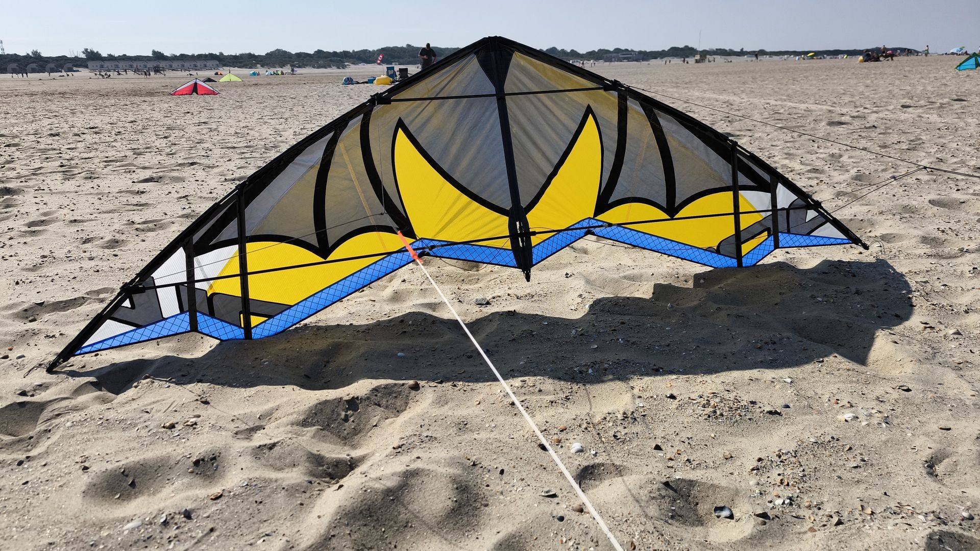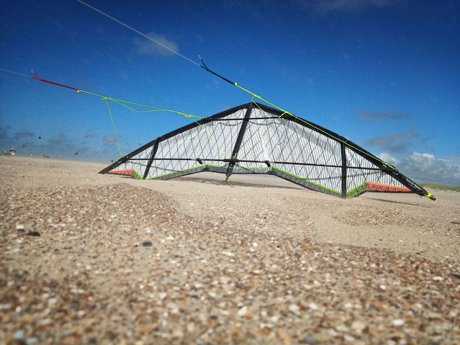 Das tat dem Ganzen aber keinen Abbruch - in der Zeit zeigte die Kleine sich dann von der besten Seite. Auf dem vorletzten Knoten war der Start selbst nach langer Drachenabstinenz problemlos, das nutzbare Windfenster gross, der Sound echt Klasse, die Power fuer so ein kleines Fluegelchen angenehm und der Speed? Dazu nur soviel: Ich bin mir sicher, dass ich heute keinen schnelleren (Speed)-Kite am Strand gesehen habe!
