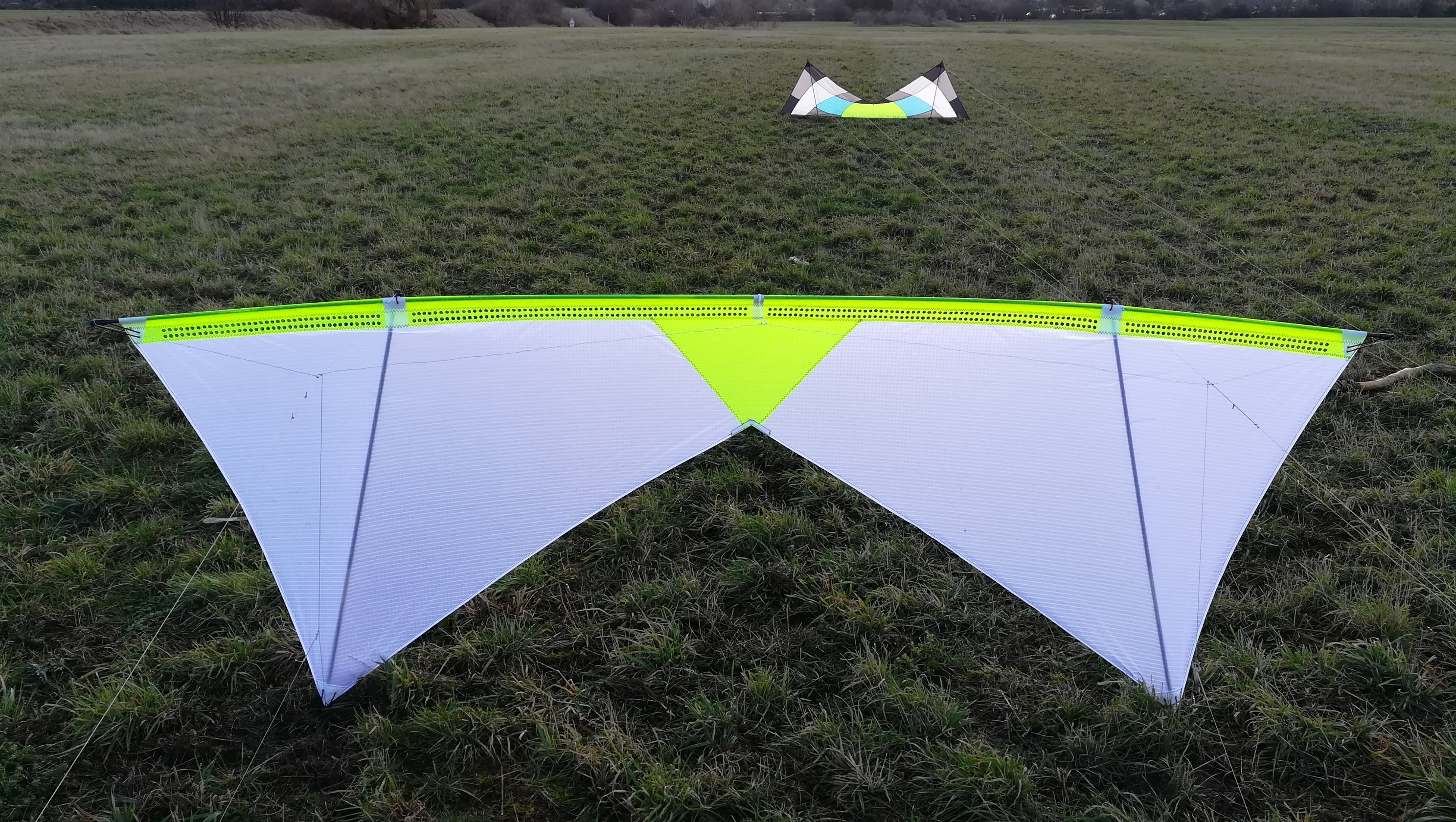Das wenig Gewicht alleine nicht ausreicht war mir schon vor meinen UL Projekten klar. Und klarer wurde es mir als verschiedene Leute meinen Cuben Rev bei gaaaaanz wenig Wind flogen .... Bzw. eben nicht flogen weil leicht alleine halt nicht reicht. Aber es war damals auch nicht alleine meine Intention einen Drachen zu bauen der, der bei wenig Wind fliegt. Mein Ziel war, einen Drachen zu bauen, der bei wenig Wind abhebt ohne das ich laufen muss. Done!!! Mein aktuelles Projekt hebt allerdings noch etwas früher ab und hat mehr Druck im Segel. Da er eigentlich für die Halle gedacht ist, habe ich auf Gaze verzichtet und dennoch fliegt er gut rückwärts.