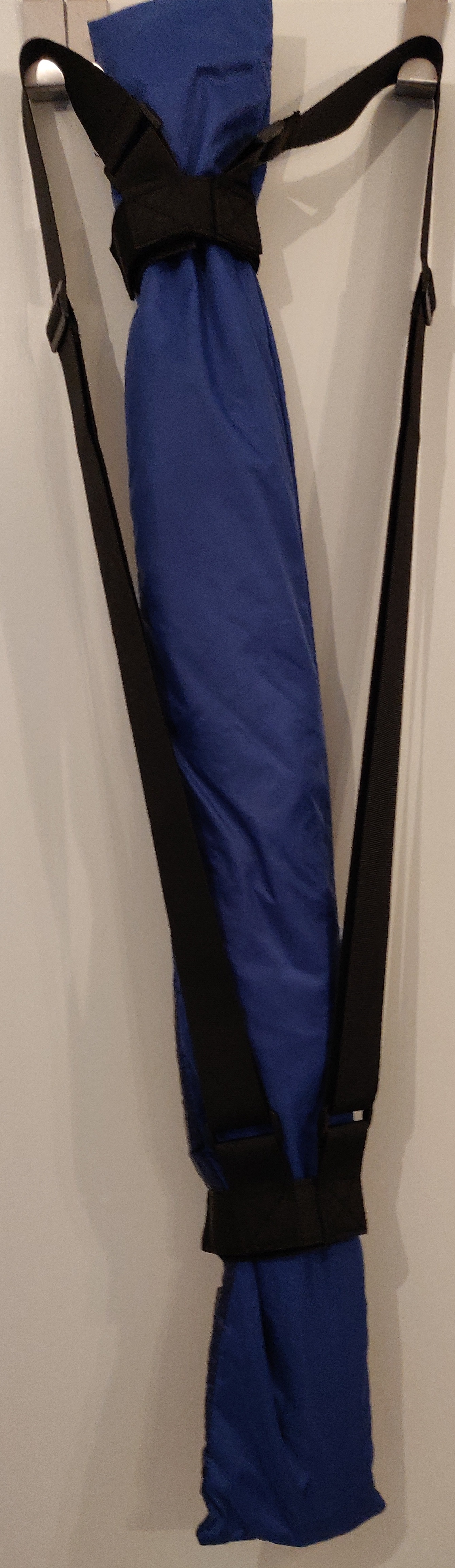Zuerst habe ich mit Snowboard Riemen proboert, das ging schon ganz gut, einfach die Drachen zusammengepackt, den Riemen drumgelegt, Klett zu, fertig, trägt sich wie ein Rucksack und ist frei verschiebbar bis man es zuzieht, so kann man steuern wie weit es oben rauskucken darf oder besser wie weit es unten überstehen darf. Wenn ich mehr mit beipacken muss leg ich alles in eine Stativtasche oder so und ziehe die Snowboard Straps drum, geht auch.