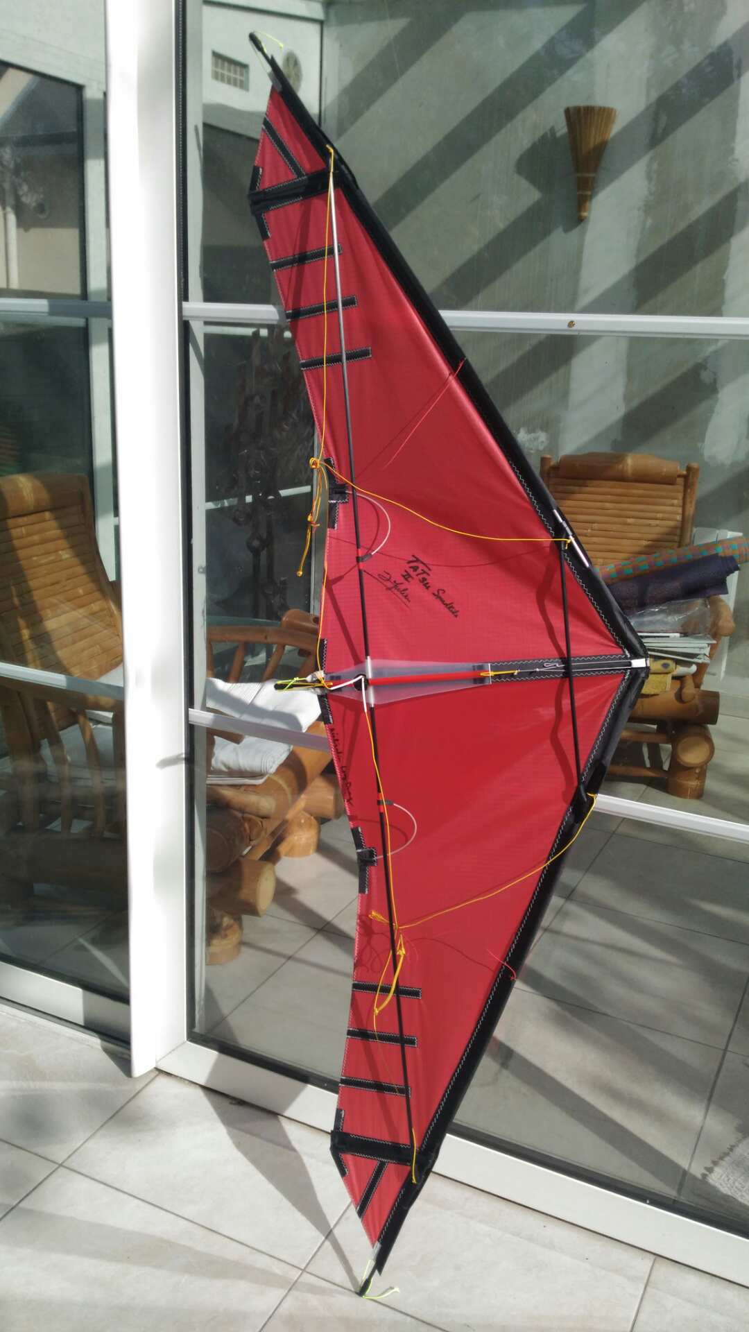 Sollte bei einem Kite dieser Preisklasse nicht sein .Welche Bedeutung Juliens Signatur auf dem Segel hat , werde ich demnächst noch versuchen in Erfahrung bringen .