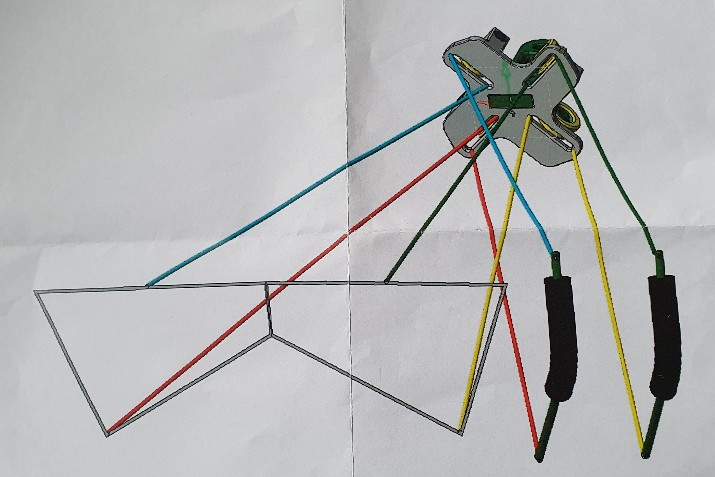 Es geht darum ob die Leinen, welche aus der Mitte kommen zum kite oder zu den handles gehen und dann natürlich die Leinen außen zu den handles oder kite…