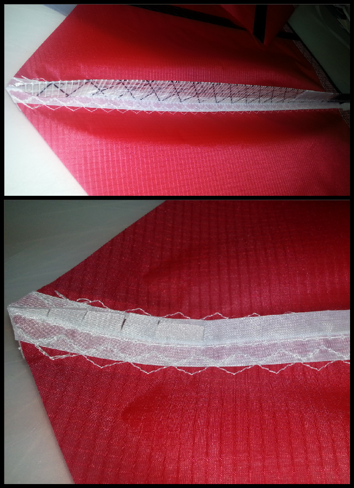 Leitkantentaschen und weiße Verstärkungen sind aus Cuben/Polyester Laminat.