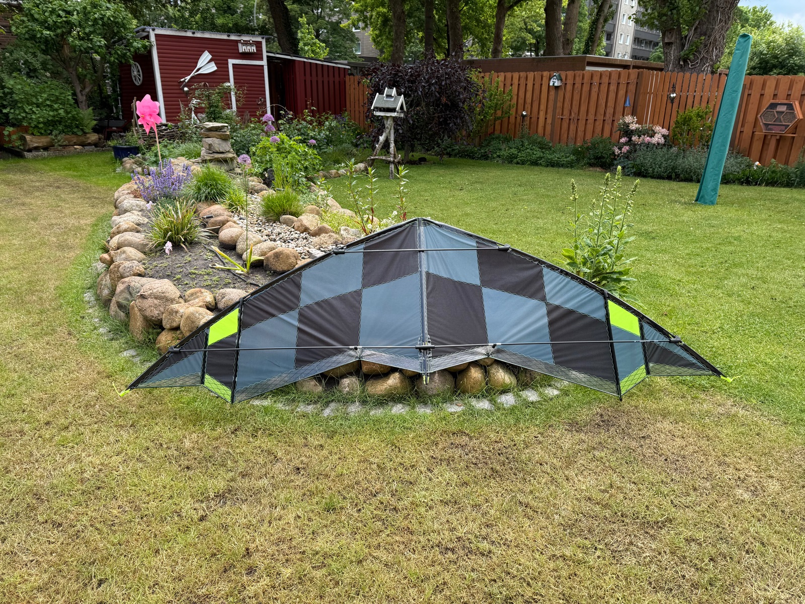 Entschuldigt, aber ich muß erst wieder rein kommen.. So sollte es dann passen, oder? Das Dacron kommt zur Verstärkung von vorne und hinten.