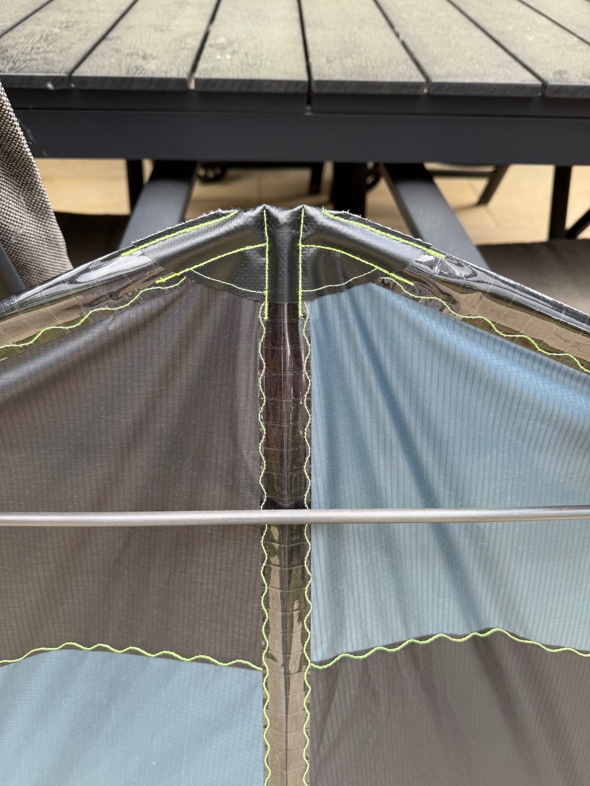 Die Mylar -Schleppkante sollte glaube ich auch mit Segelmacher-Naht befestigt werden.