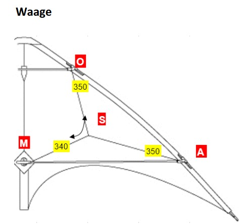 Im Übrigen kann man den Flügel auch an der Waage über die Schiebeknoten etwas einstellen. Also bei mehr Wind ruhig mal ein wenig steiler stellen. Dabei sollte man aber in 2 mm Schritten vorgehen.