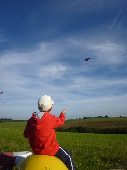 Er fliegt fast nur Einleiner, hat aber schon mit Smithi pro und einem 2 Leiner erste Flugversuche unternommen....aber auf jeeeedem Drachenfest ist er dabei und mag dieses Hobby vom Papa :D