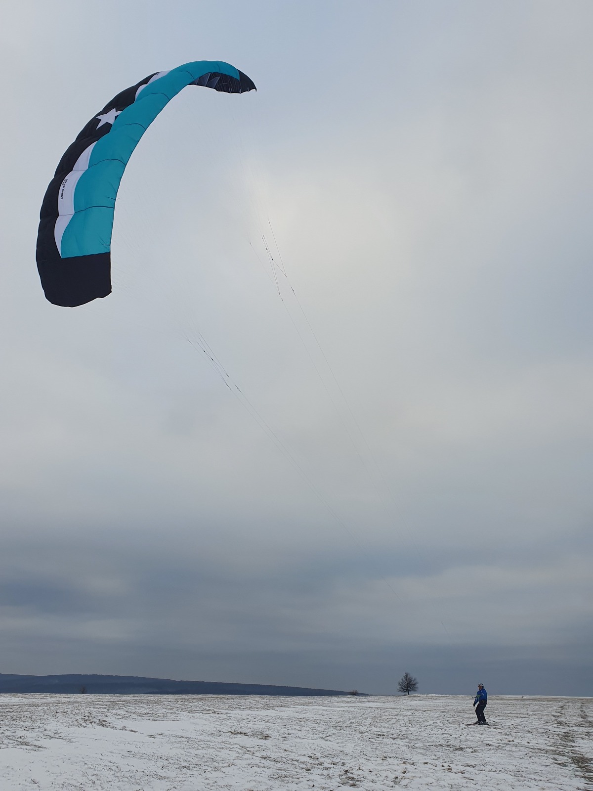 Heute Snowkiten bei schönem Wetter und brauchbarem Wind mit LST-2-7.5/9.5/12.5 in Moldava.