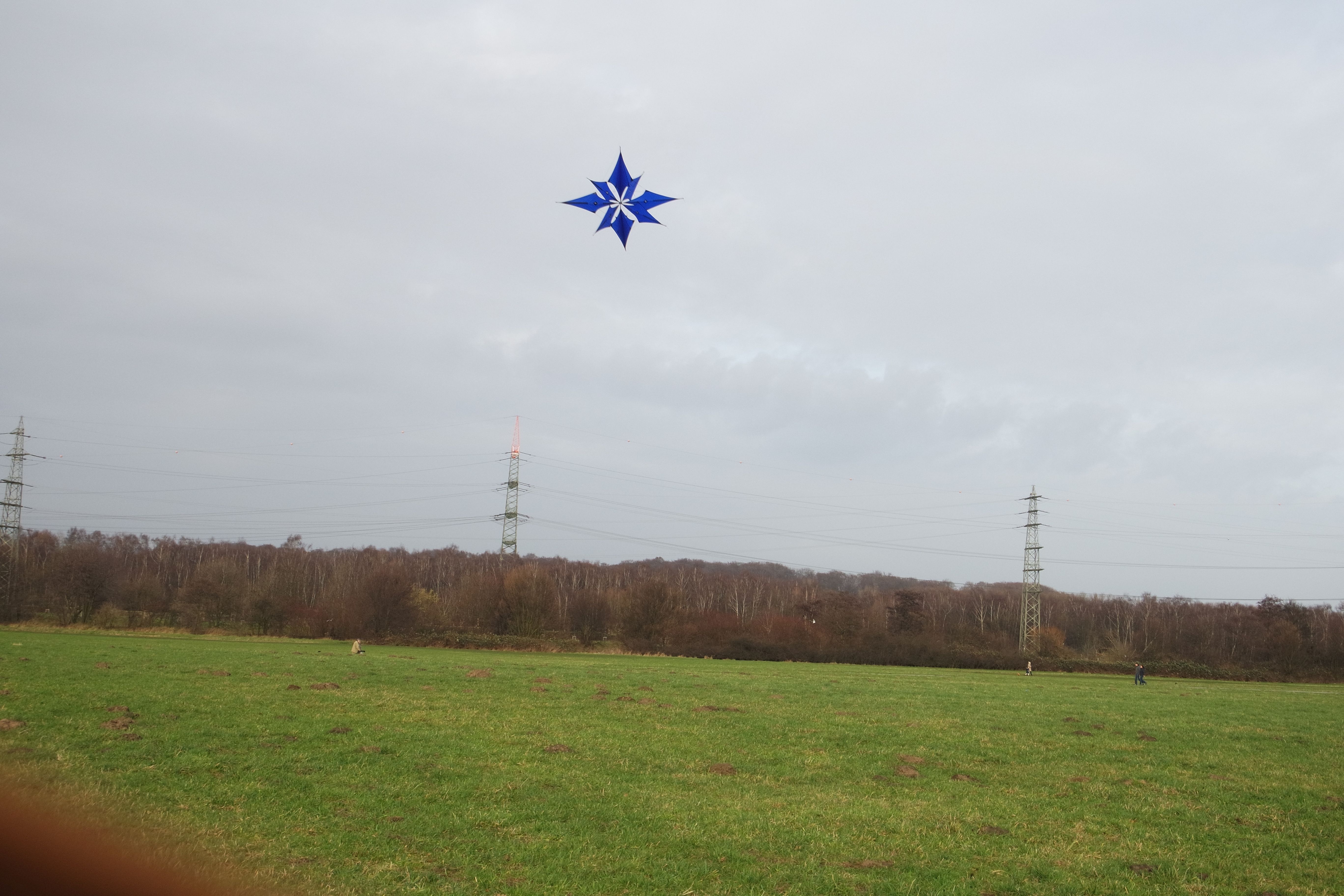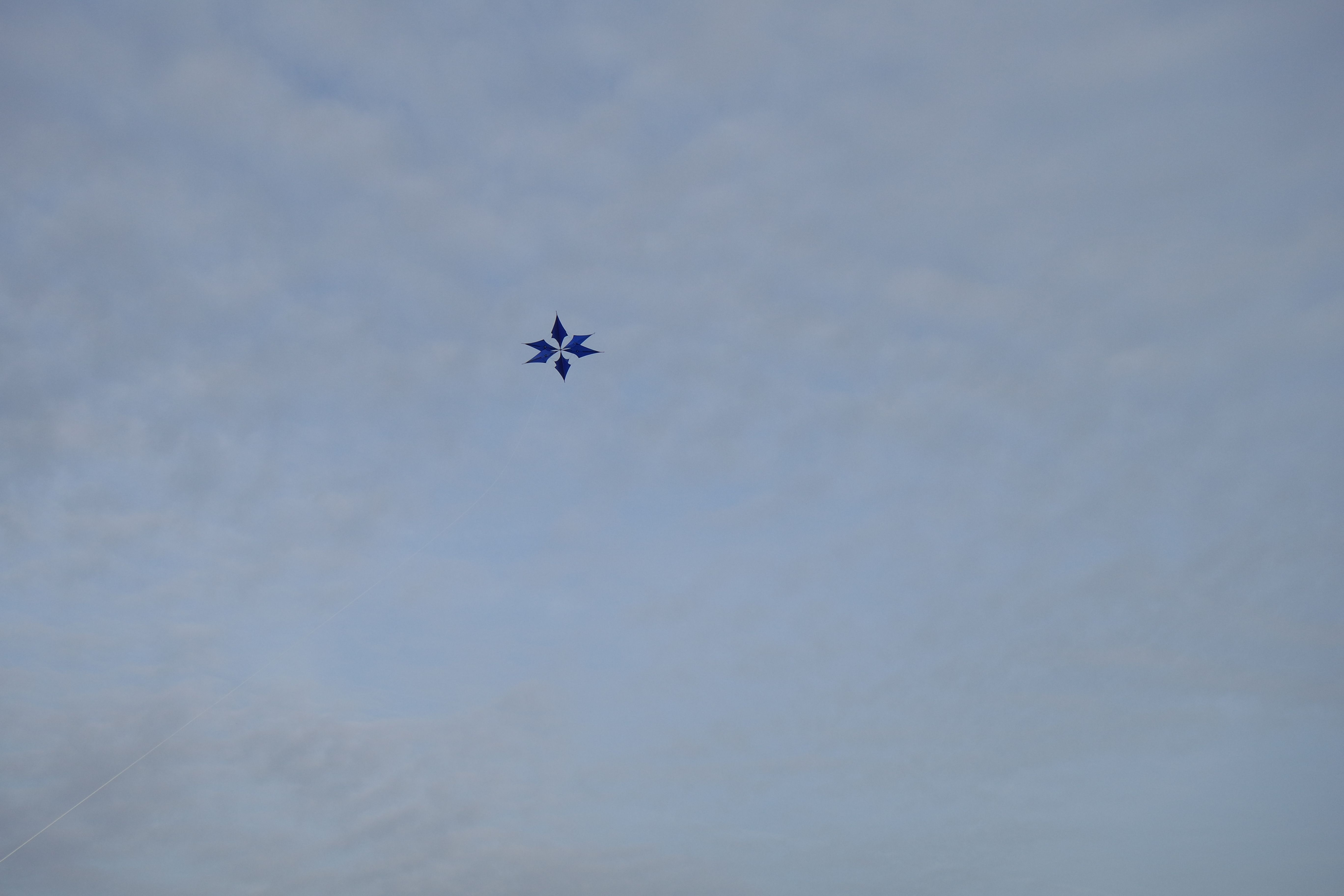 Raus kam ein Eiskristall mit nun 18 Segeln. Ich habe hier die Anzahl der Flügelsegel von 6 Stück auf 12 Stück verändert. Auch der ganze Drache ist nun größer geworden. Heute war der erste Testflug. Oja. Nuja. So So. Das Flugverhalten ist anders. Obwohl größer, braucht er mehr Wind. Wirkt ein wenig träger, zieht aber wie dolle. -