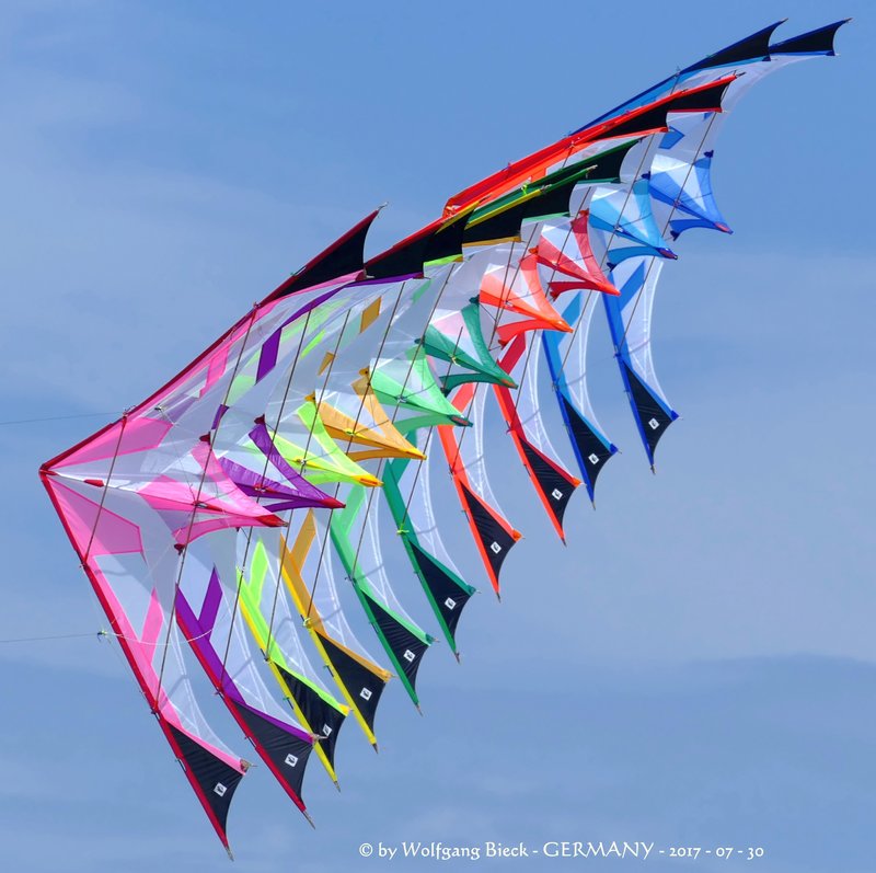 ... und ganz nebenbei lieferst du fast die komplette aktuelle Palette an Icarex-Farben vor strahlend blauem wie auch bewölktem Himmel. Inspirierend sicherlich für manch Drachenbauer/in