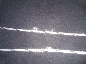 Die Fäden sind von spitzen Gegenständen, wie Muscheln und Steine etc. rausgezogen.