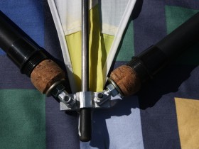 Wieso musstest du deine Querspreize anpassen? Ich habe sie am Ende jeweils mit einem Gummiring und ner Endkappe versehen, aus einem Schubkarrenschlauch Ringe geschnitten und einfach um eine Rute und ein Stangenende gewickelt, gesichert, fertig. -