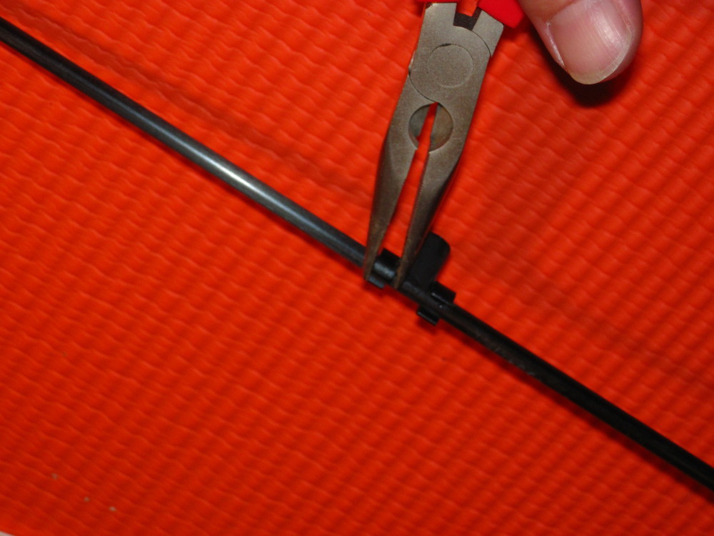 Nun das Getüddel mit der Waage. Habe also den Drachen aufgebaut, damit ganz klar ist, wo die Waage am Verbinder angetüddelt werden muß. Dann den Kiel ausgebaut, den achterlichen Klips abgebrochen und dann in dem neuen Verbinder durch gesteckt. Kiel wieder montiert und alles kontrolliert, dass alles stimmt. Dann den letzten Klips wieder auf geklebt.