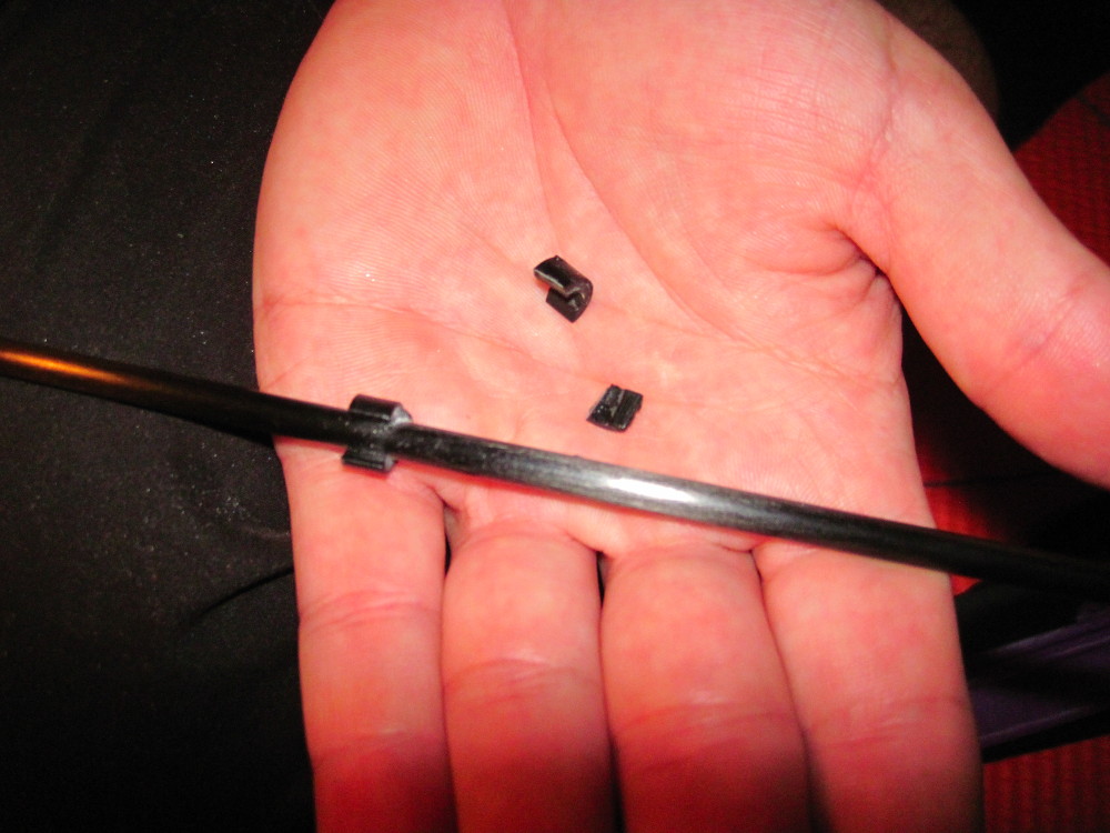 Also... Klipse abbrechen und den Verbinder von den Achteliekaufstellern (oder wie immer die Dinger heißen) raus ziehen und Reste vom Verbinder zum Kiel entfernen. Den neuen angebohrten Verbinder drauf schieben. Neuen Klips auf gereinigte und geglättete alte Stelle wieder aufkleben. Was natürlich erstmal schief ging, weil ein Verschieben nach dem Aufklipsen nicht mehr möglich war. Also nochmal einen neuen an der richtigen Stelle anbringen. Dann wieder bei gleicher, alter Stelle den Verbinder zum Achterliek wieder ankleben und Verbinder hin schieben.
