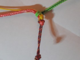 Was ist mit dem kurzen rot/blauen Stück? Das ist bei mir ungenutzt. Wenn ich aber die Steuerleine daran befestige, rutscht diese gelbe Waageleine herum, wie sie will.