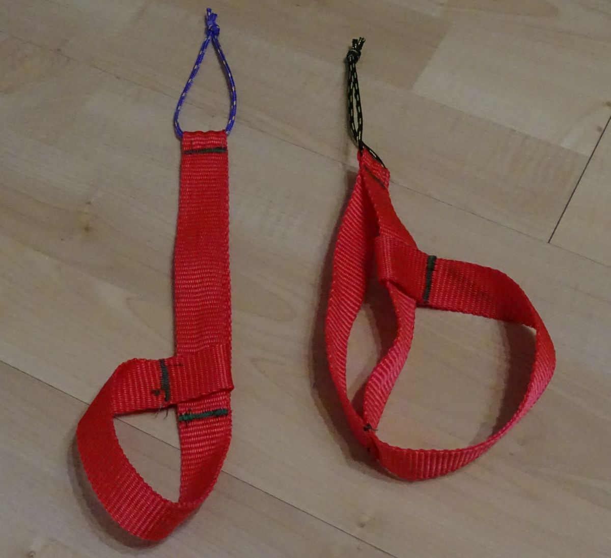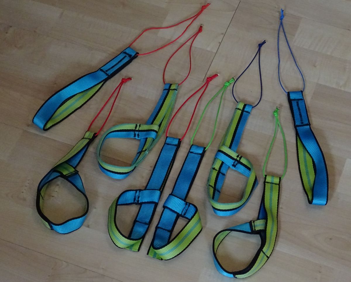 Ich habe mir zum Probieren ein Paar der Vario-Schlaufen, die Paul May in der aktuellen Kite&Friends beschreibt, genäht.