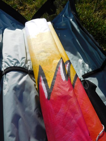 Hochgelassen hab ich ihn nicht, nur zum fotografieren drückte ich Ihn meinem Sohn in die Finger...Grund war einfach der drehende und böige Nordwind der mir einfach nicht gefiel, zumal ich nur eine 60 dan Einleinerschnur dabei hatte...das Segel war zum bersten gebogen...trotz Waage verstellens....da brauche ich noch mal eine helfende Hand ...Andy??