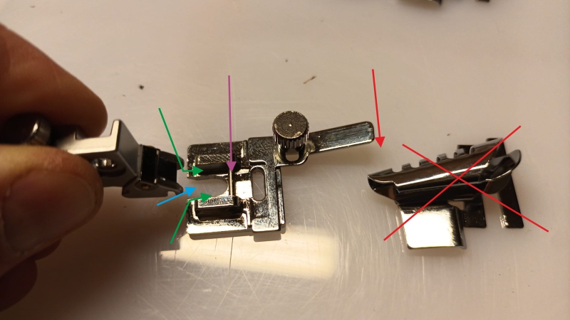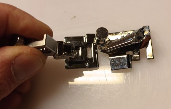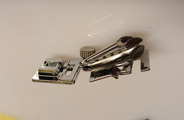 Ausgegenagne bin ich von einem Snapon-Füßchen, dass allerdings zu schmal ist und deshalb nicht auf den normalen Füßchenhalter meine Pfaff Nähmaschine passt.