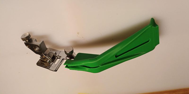 Angeregt durch meinen Drachenkumpel Klaus habe ich mal einen Saumbandfuß gebaut, für all diejenigen, die nicht mit dem Saumapparat (suissei) zurecht kommen oder vieleicht einfach kein Loch in der Stichplatte haben um diesen zu montieren.