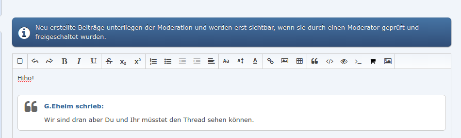 Und über dem Eingabebereich für da neue Posting steht noch immer: