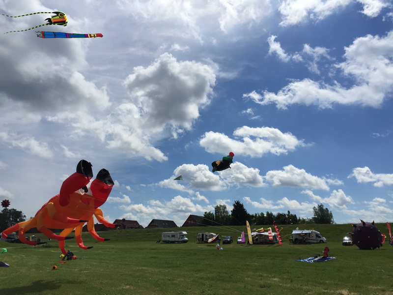Weitere Kites habe ich dann nicht mehr aufgebaut, da der Wind immer mehr abflaute.Aber ich habe mich nett mit zwei Forumsmitgliedern der 2-Leiner-Fraktion unterhalten. Wie hießen die noch gleich? Oh man, mein Namensgedächtnis. Ich werde alt