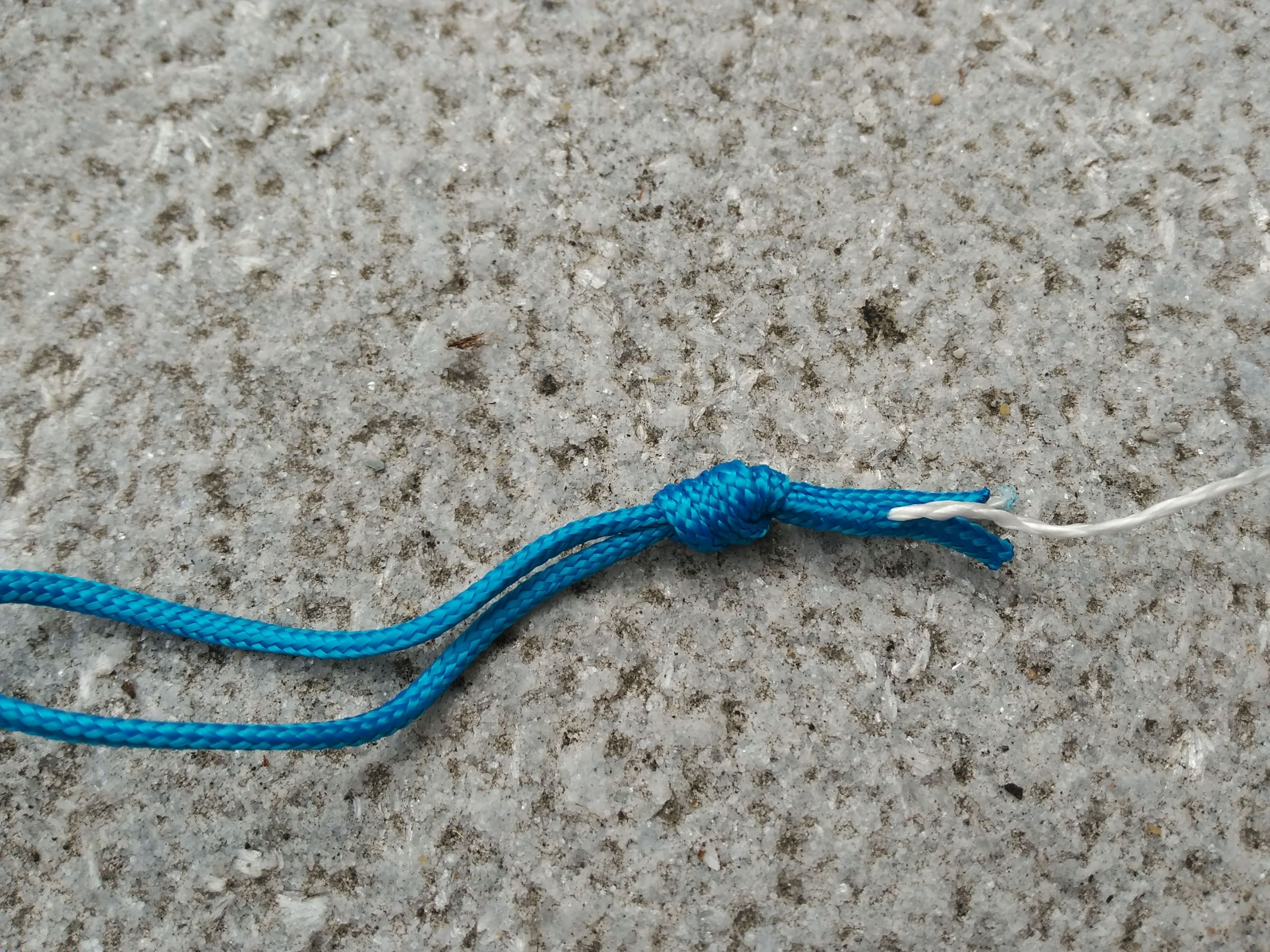 4. was mag diee kleine Leine an der Waage für eine Art Leine sein? Ist das normalerweise die gleiche Stärke wie die Hauptleinen? Wie heißen die Knoten, mit denen die Waage-Leine befestigt ist (dann kann ich mir das ein bisschen anlesen)?