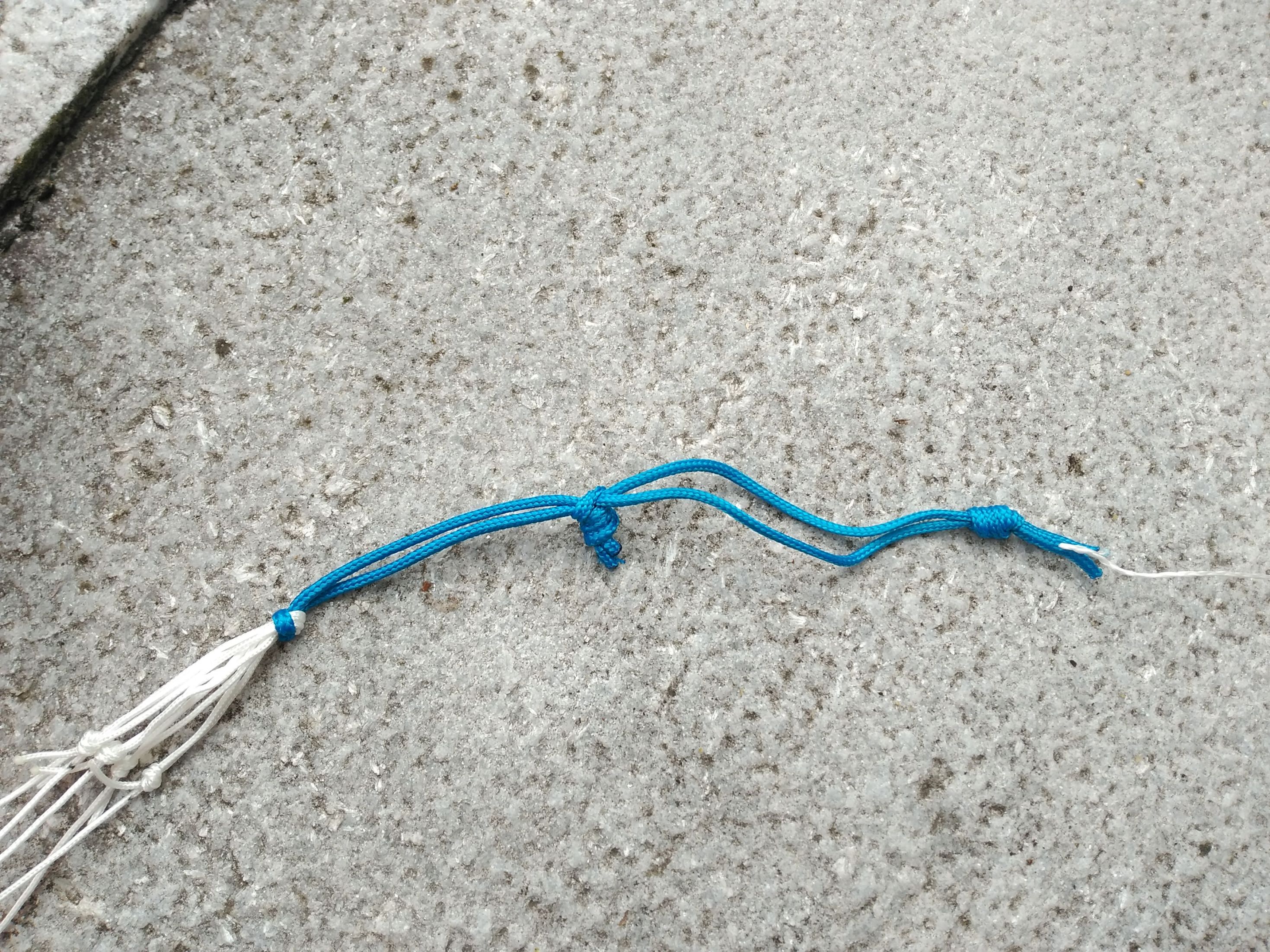 Für die Waagleine würde ich eine Leine mit 70 bis 90kg Tragkraft verwenden. Als Leineset vielleicht was um die 120 kg und so 25 Meter Länge. Länger und stärker wird wohl die Matte überfordern, da geht dann eher was an der Matte kaputt. Die Leinen werden bei allen Kites mit Buchtknoten befestigt.