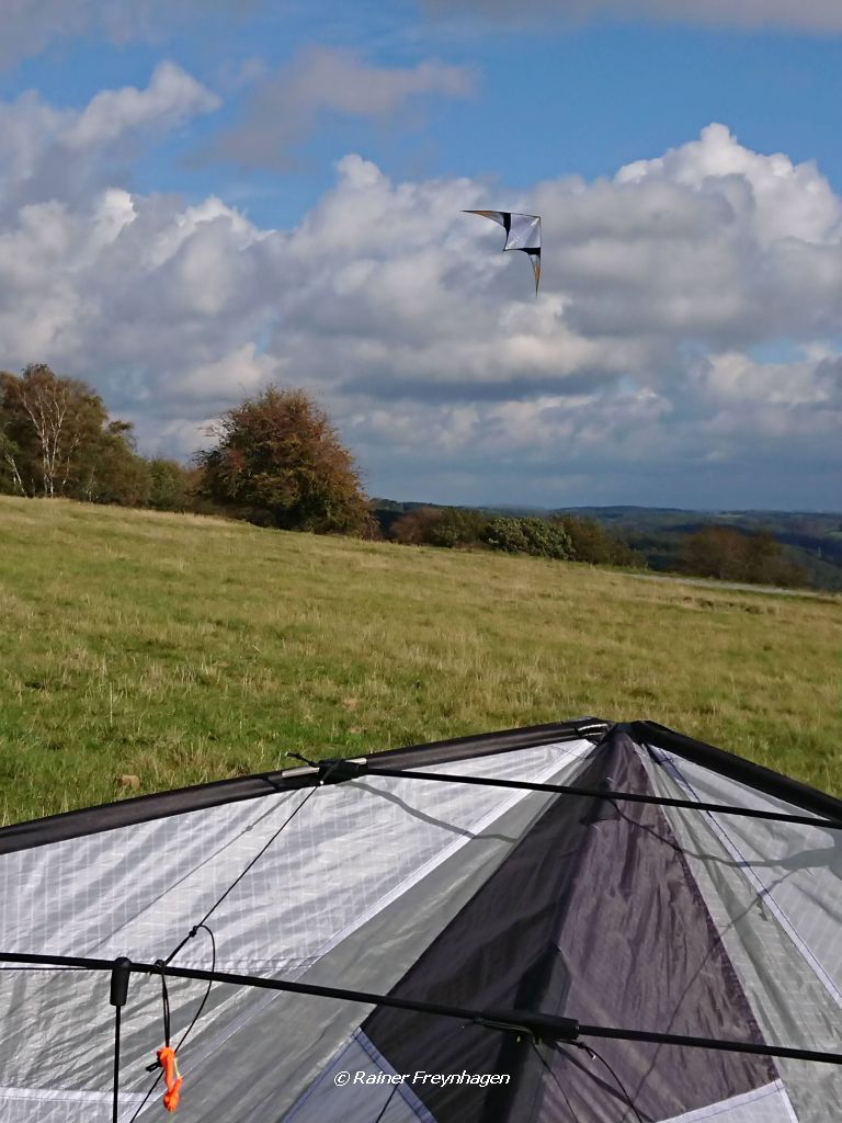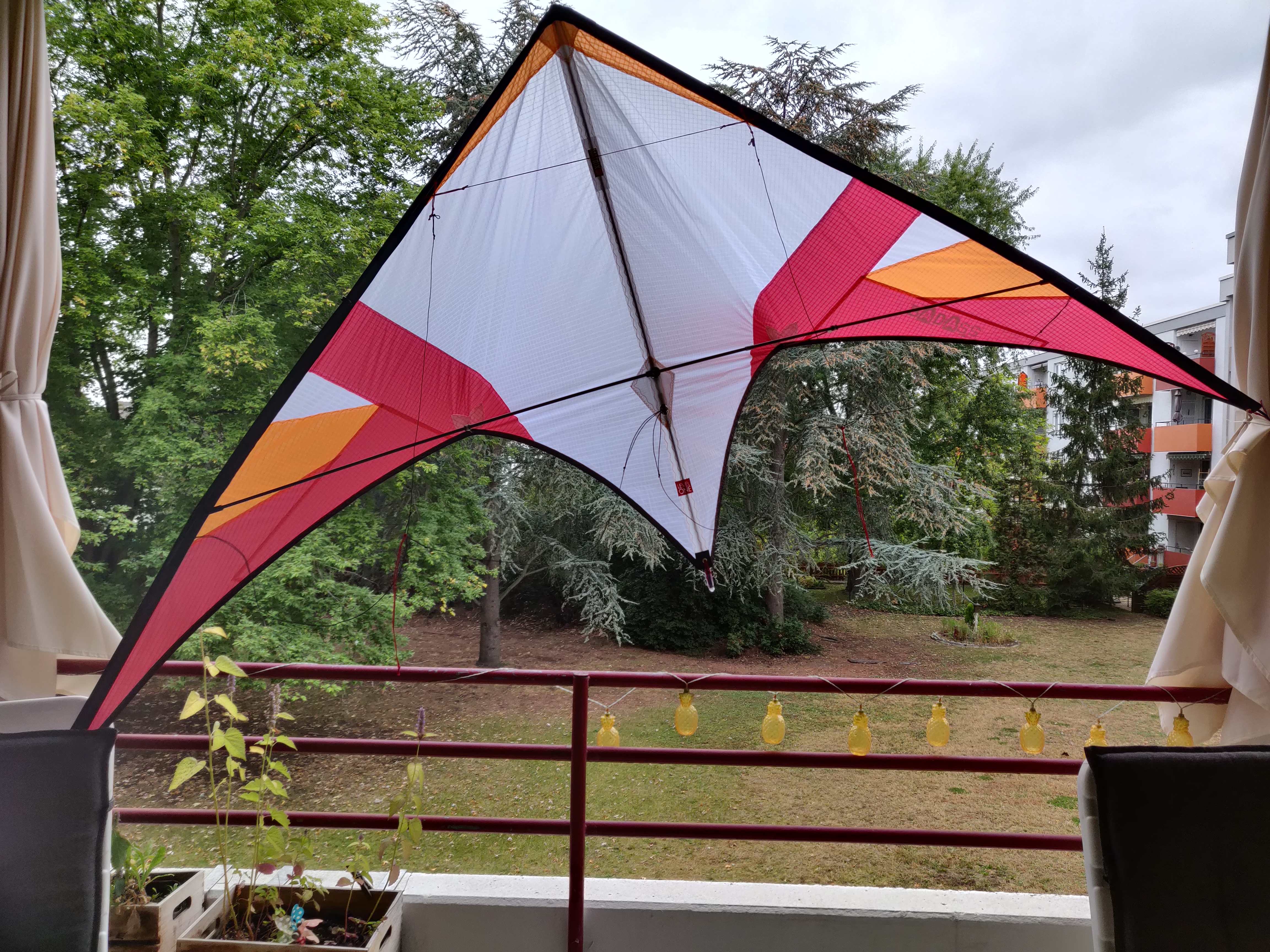 Man hat beim 360er Fliegen manchmal gemerkt ob doch nen Hauch von irgendwo kam. Dann ein paar erste Regentropfen, weiteres also verschoben. Der erste Eindruck war aber geil! Freue mich auf die nächsten Schweberunden.Der kite ist ansonsten gewohnt super verarbeitet und wirklich federleicht. An der Waage gibt es oben einen zweiten Knoten, mit dem oberen kann man noch etwas auftriebiger/mehr auf Strömung und etwas weniger Stall-Bereitschaft einstellen.