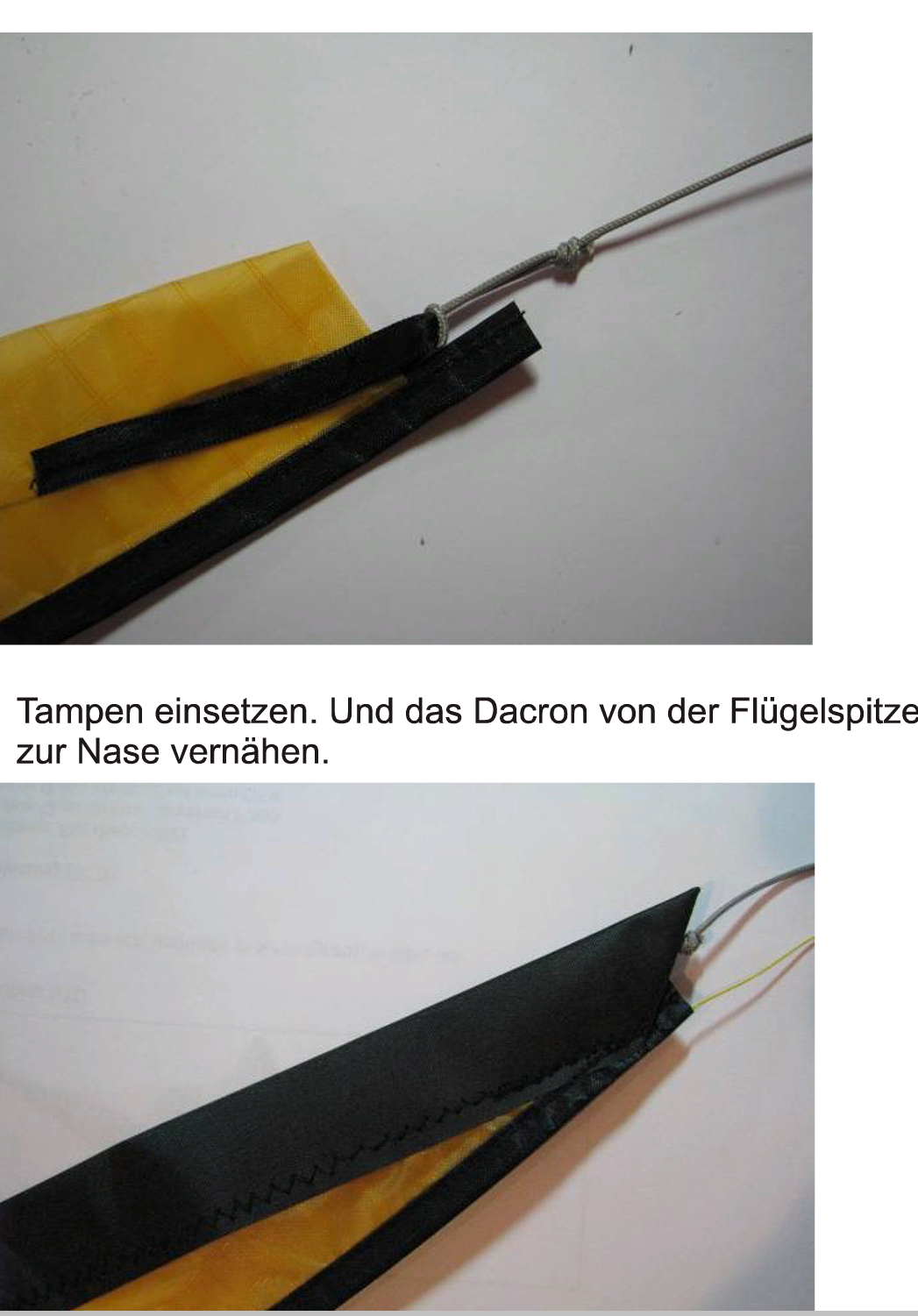 die Saumschnur wird an der Flügelspitze angenäht und läuft über die Pfeilnocke