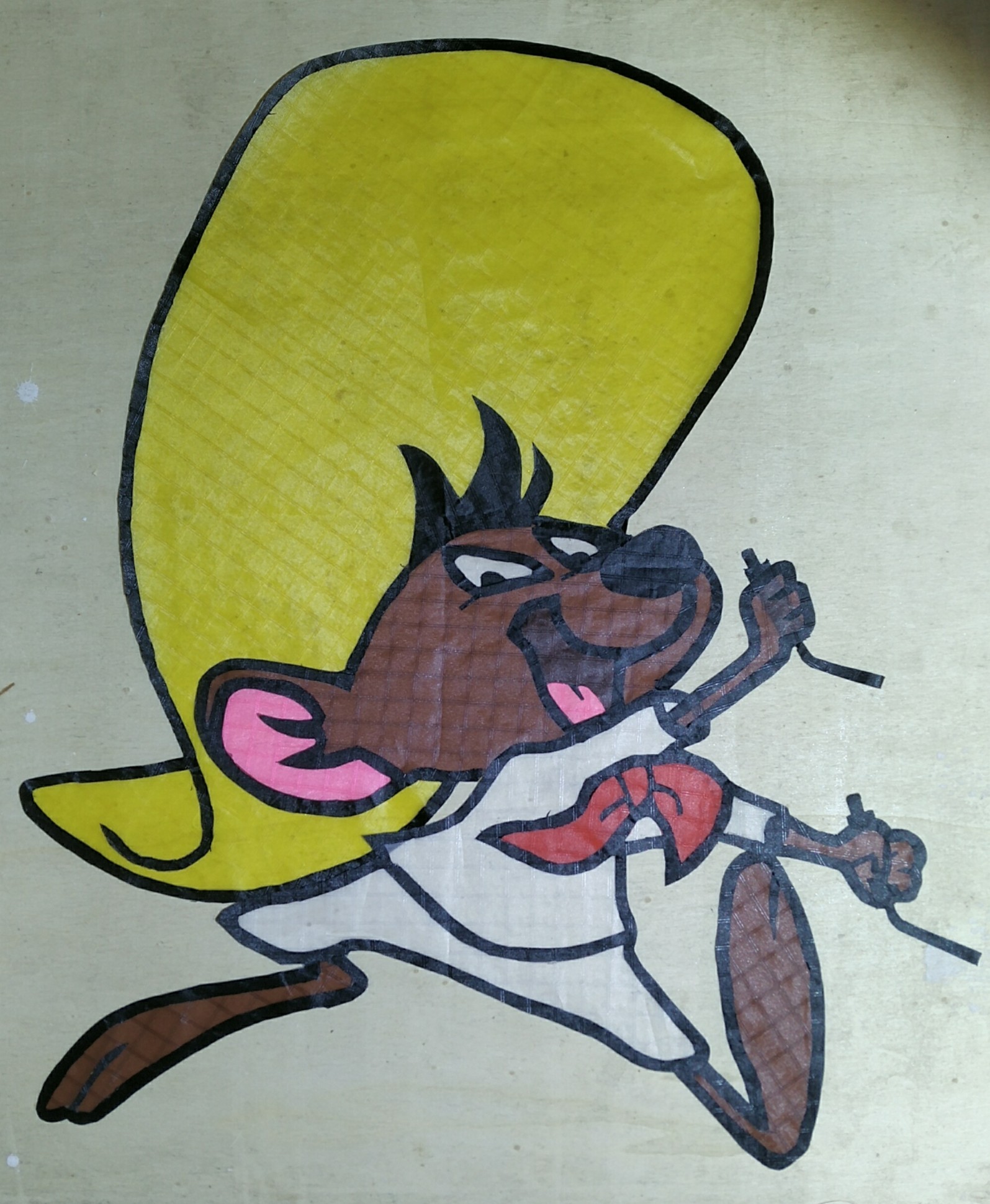 Da ich in meiner Kindheit unter anderem mit der Zeichentrickserie "Speedy Gonzales" aufwuchs, war sofort die Idee für das Design geboren. Speedy Gonzales als Comicfigur war gesetzt. Der sollte einen Kase-Drachen fliegen.