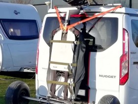 Für die Fahrt zum Urlaubsort steht der Buggy auf dem Fahradträger auf der Deichsel des WW (im Hintergrund)