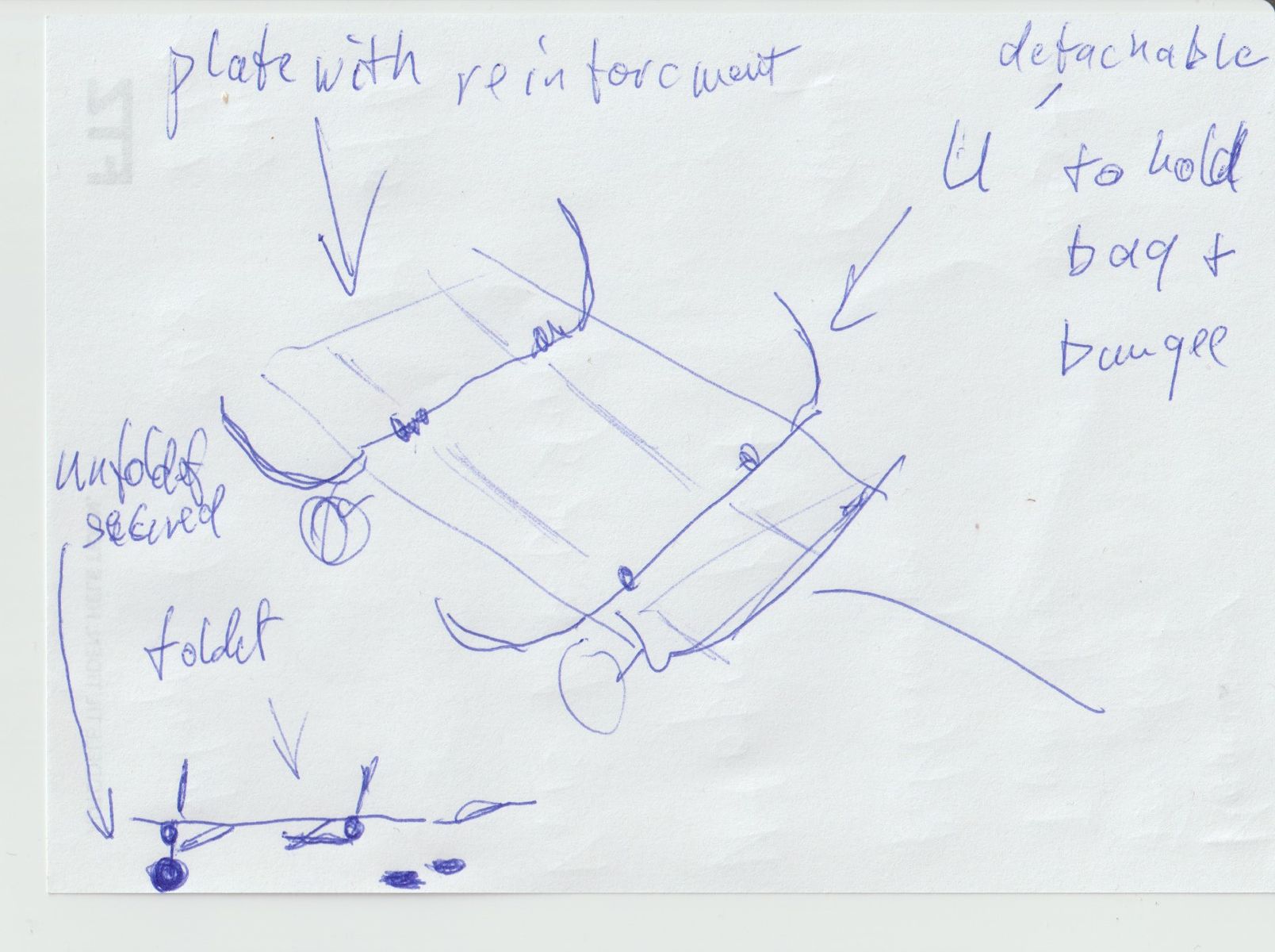 Hmm, if the axels are detachable and directly under the base (without the folding mechanism), then the wheels could be to the side and