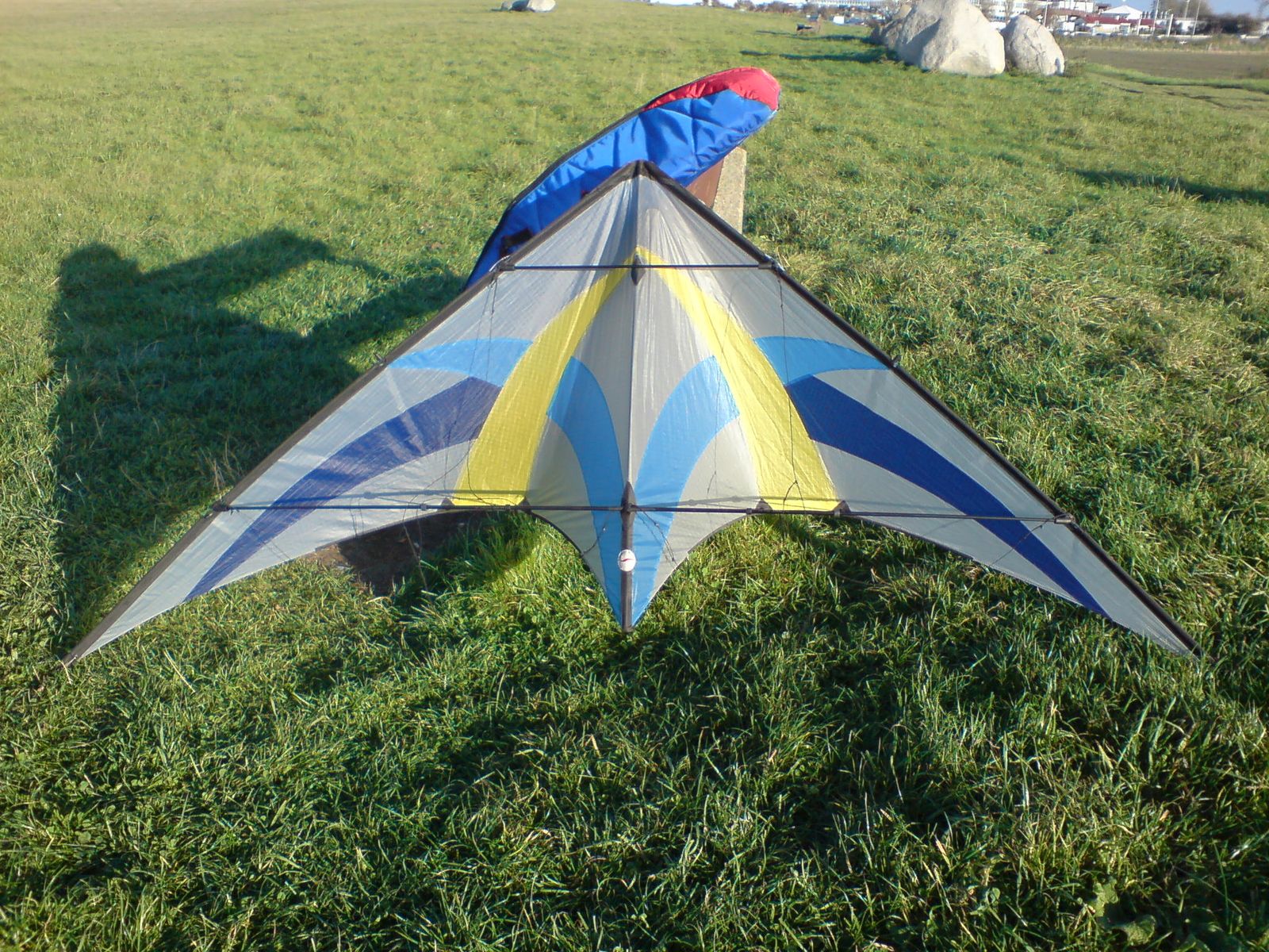 Sorry, hab nicht die genaue Länge, aber Du kannst den Stab so einpassen, daß er den Drachen leicht !!! "aufspannt", das war so üblich bei den Prism Drachen.