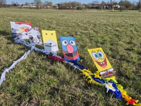 Und zur Zeit hängt der fertige Drachen auf Arbeit als Osterdeko an meinem Bürofenster: