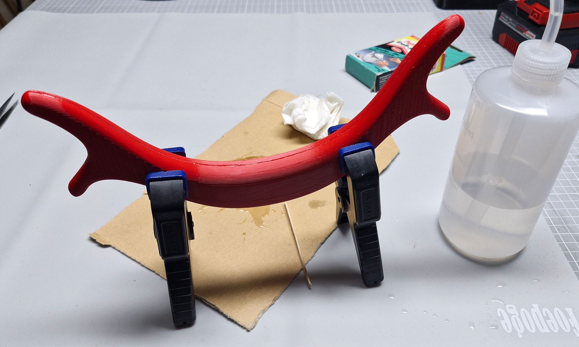 Ich lasse jetzt erstmal den Kleber über Nacht abbinden. Ich hoffe der uralte Kleber härtet gut aus.