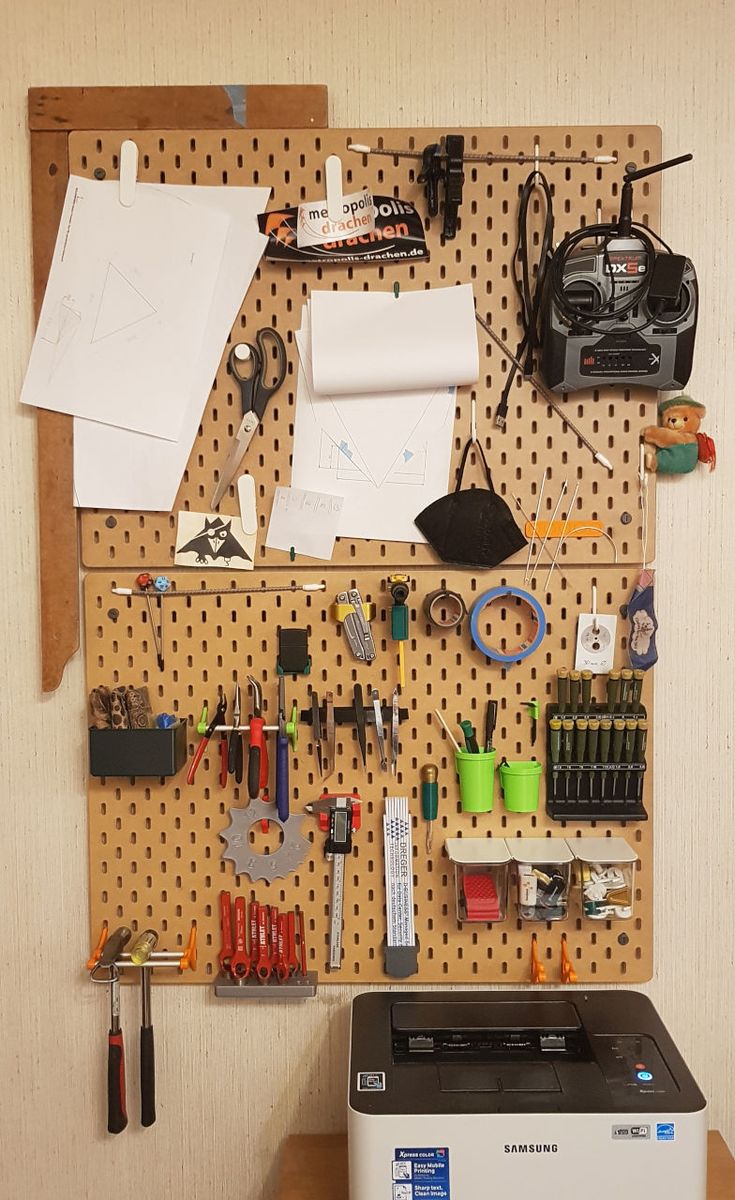 Und noch so nebenbei: Im selben Raum ist auch meine Skadis-Lochwand, mit allem, was ich noch griffbereit haben will - natürlich mit viel 3D-Drucken.