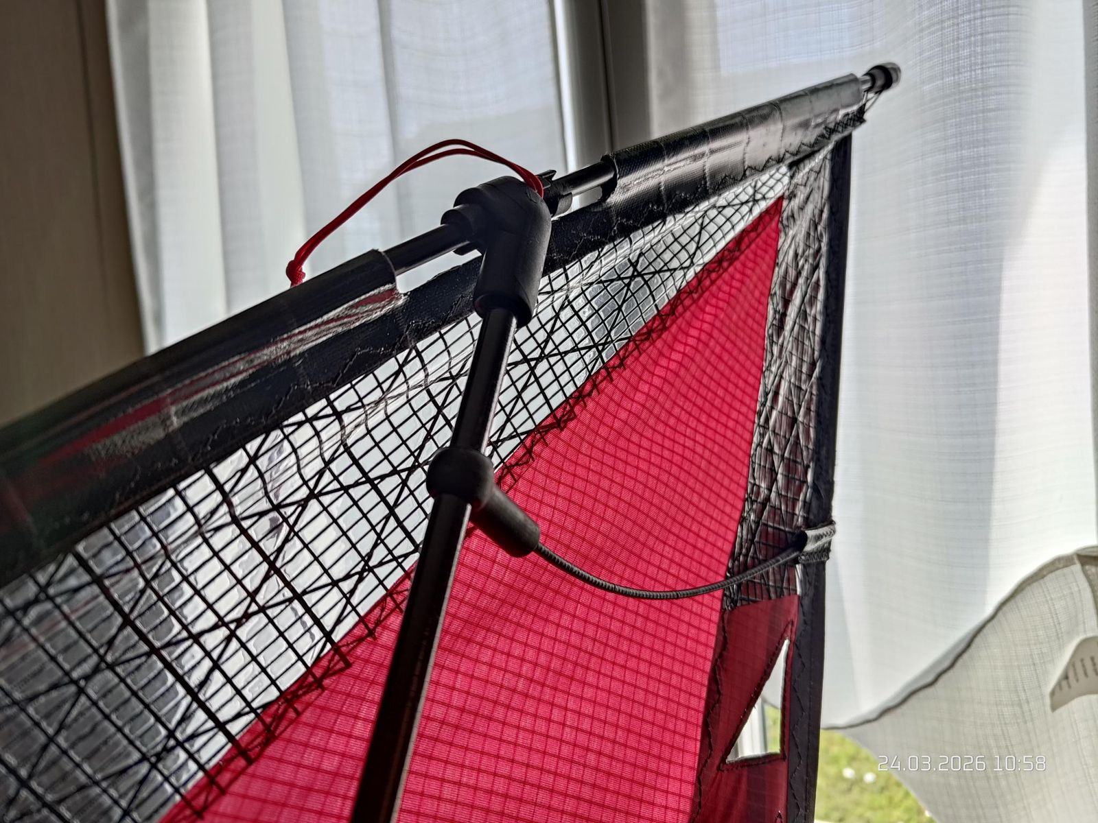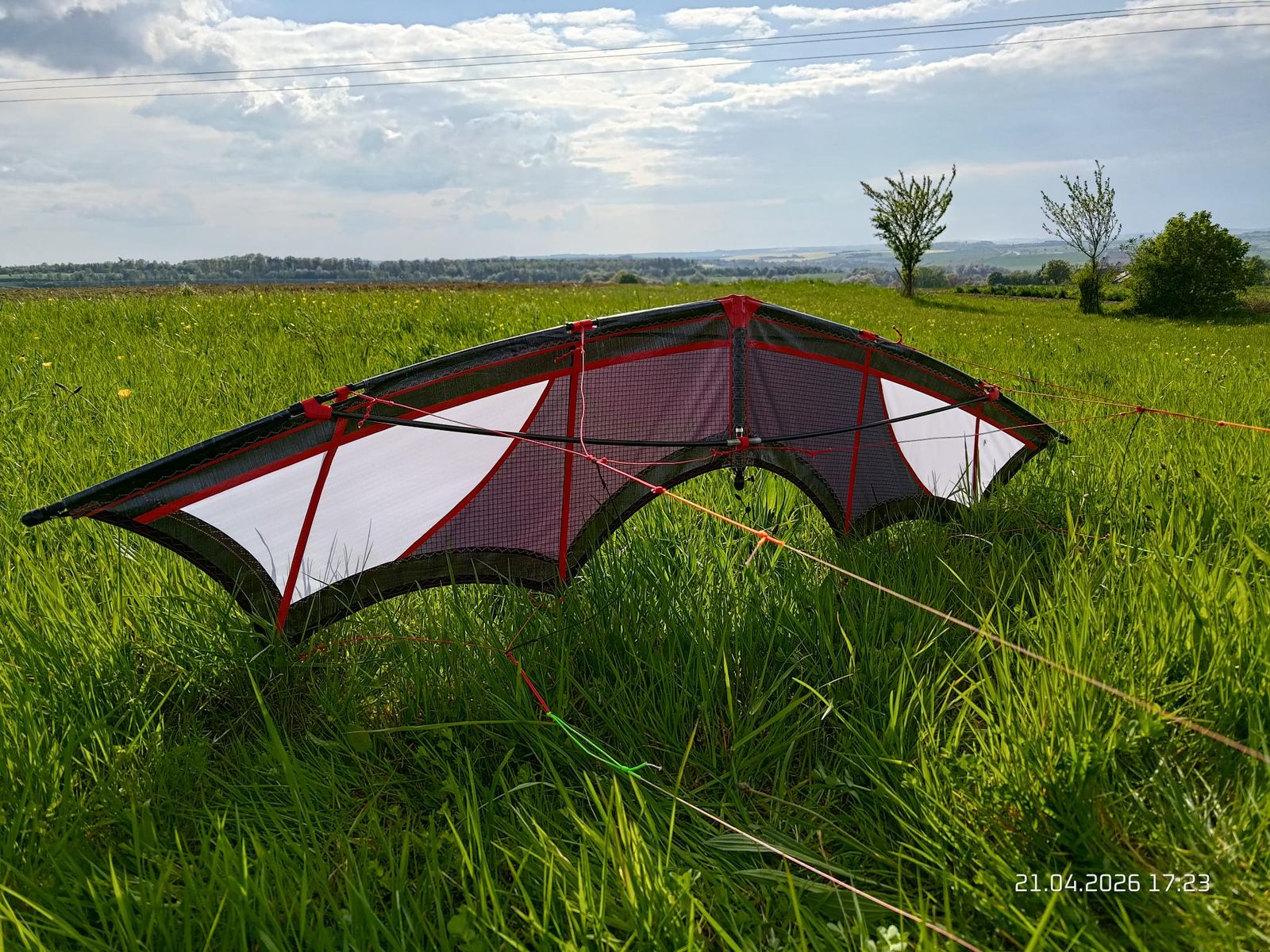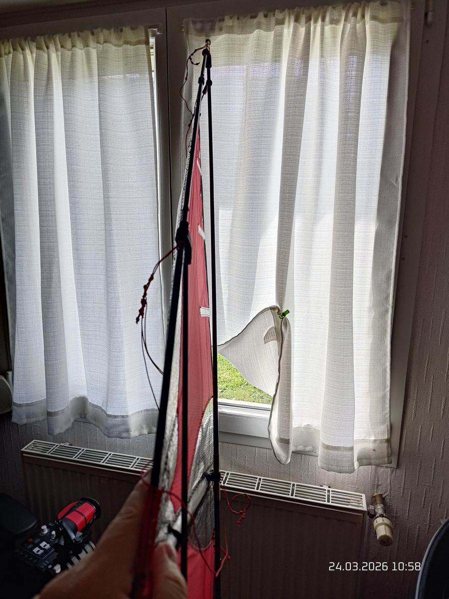 Wegen der Leinenlänge: Die 35 m haben sich, um besser vergleichen und bauen zu können, durchgesetzt. Die meisten "echten Speedkites" sind auf diese Leinenlänge gebaut und abgestimmt und erreichen ihre Höchstgeschwindigkeit genau damit (gibt natürlich Ausnahmen!). ABER wir haben in der Freien Klasse keine Leinenlängen Vorgaben gemacht damals (nur das Flugfeld resp. der Sicherheitsbereich waren das Limit). So haben wir auch bis zu 60 m Leinen gemessen damit und natürlich auch kürzere Leinen bis runter auf 20 m.