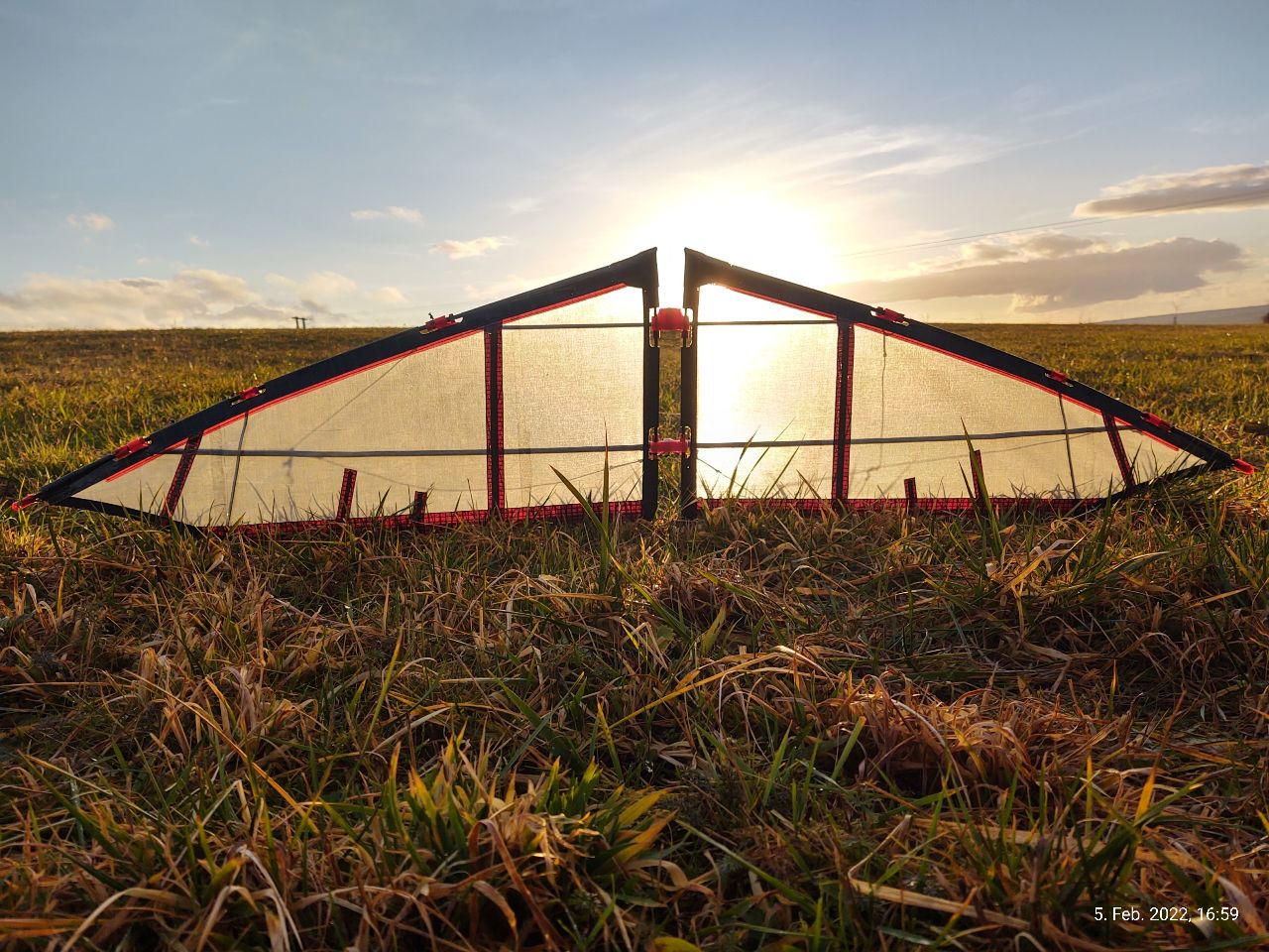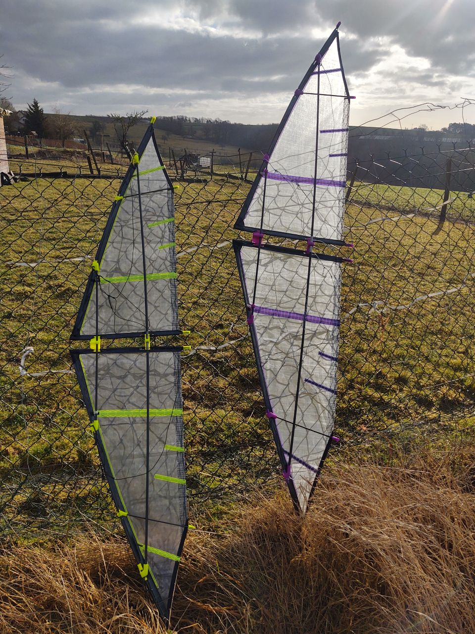 Trotzdem musste ich gerade mal für knapp eine 1h auf die Wiese und endlich meinen Summoner 165 einfliegen. Aufgrund der Anzeige meines Windmasters knüpfte ich die DC 60 an, denn er zeigte gute 30 km/h an Böen an. Leider auch sehr unkonstant und hackig, obwohl SW Wind hier auf meiner Wiese ideal ist. Der erste Start war erfolglos, also am Kreuz einen flacher. Hier ging der Summoner zwar auf Strömung, war aber zu flach und klappte fühlbar immer leicht raus. Einen Clip konnte ich an der UQS leider nicht mehr rausnehmen, so musste es halt einen steiler irgendwie auf Strömung gehen. Nach kurzem hin und her funktionierte das auch wirklich gut. in den hohen Böen (ich schätze über 30 km/h hinaus) waren die DC60 auch gut angelegt, in den tieferen Phasen hätten es DC40 locker getan. Trotzdem viel der Vogel nicht vom Himmel wie andere, ich nenne sie mal Reinrassige Speedkites.