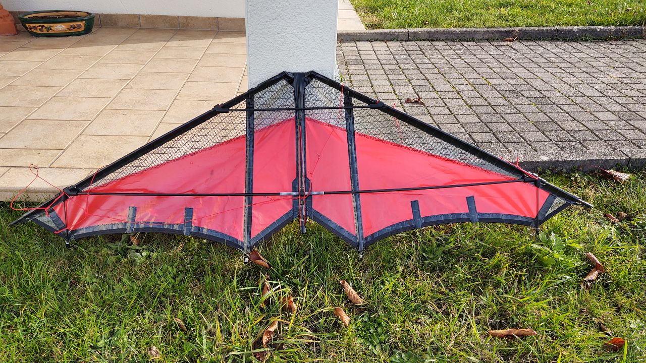 Aktuell habe ich noch die 60 cm Spreizen drin. Mal sehen ob ich ihn damit in die Luft bekomme, aber ich bin sehr zuversichtlich, weil profilieren tut das Segel gefühlt super.