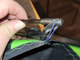 Den ersten schön flach stellen ersten oder 2ten Knoten und die koppelleinen vom vorletzten Drachen die oberen an die waage oben an den tampen letzten Knoten die unteren 3 ganz normal befestigungen.