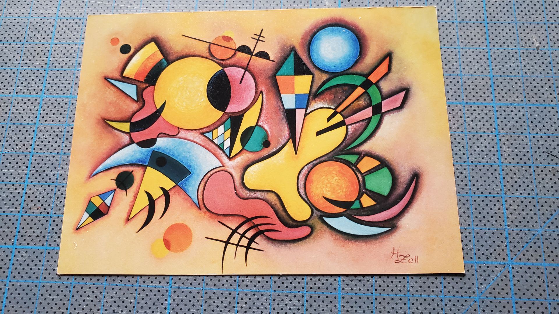 Nun ja , ich denke es ist so ,das Yves seinen eigenen Stil hat, der an Kandinsky erinnert . Und ich ein Gemälde zur Vorlage genommen habe , das von einem Maler ist, der Kandinsky als Vorlage/Inspiration hatte .