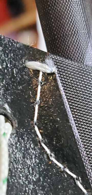 Etwas verzogen hat sich das Segel schon , das sieht man im Gegenlicht nicht, aber es geht noch .
