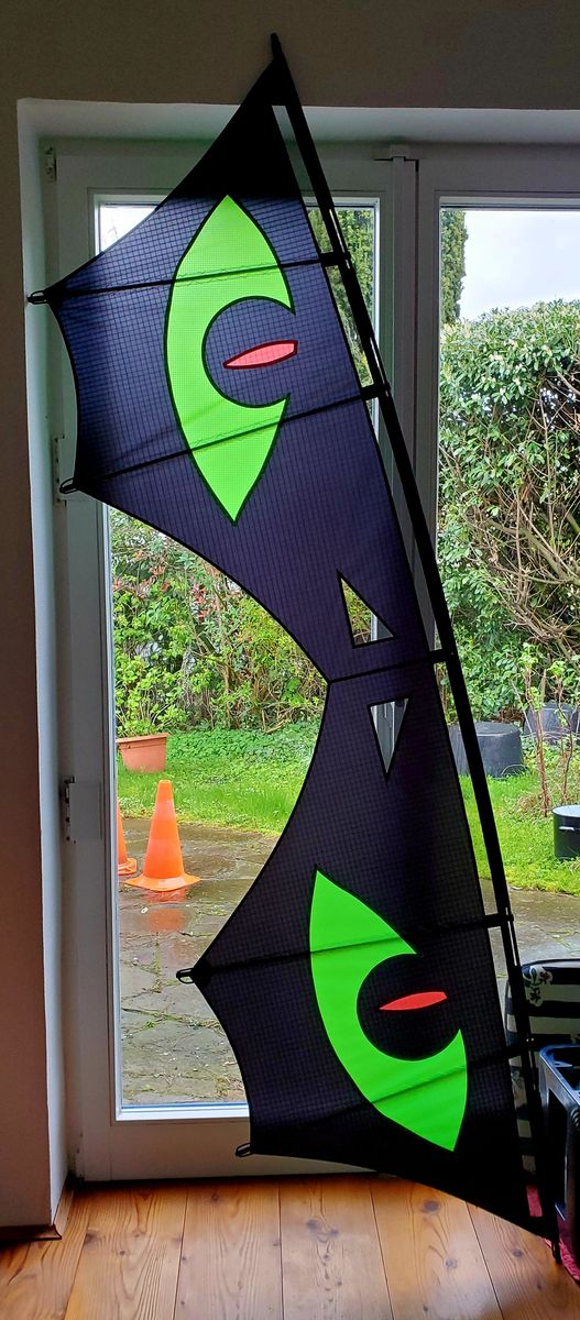 Leitkante 300et Spine , Vertikalen habe ich ein Paar Restestäbe zusammen geklebt, dadurch auch ziemlich steif, für den Wind wirkt sich das Mehrgewicht ja nicht aus