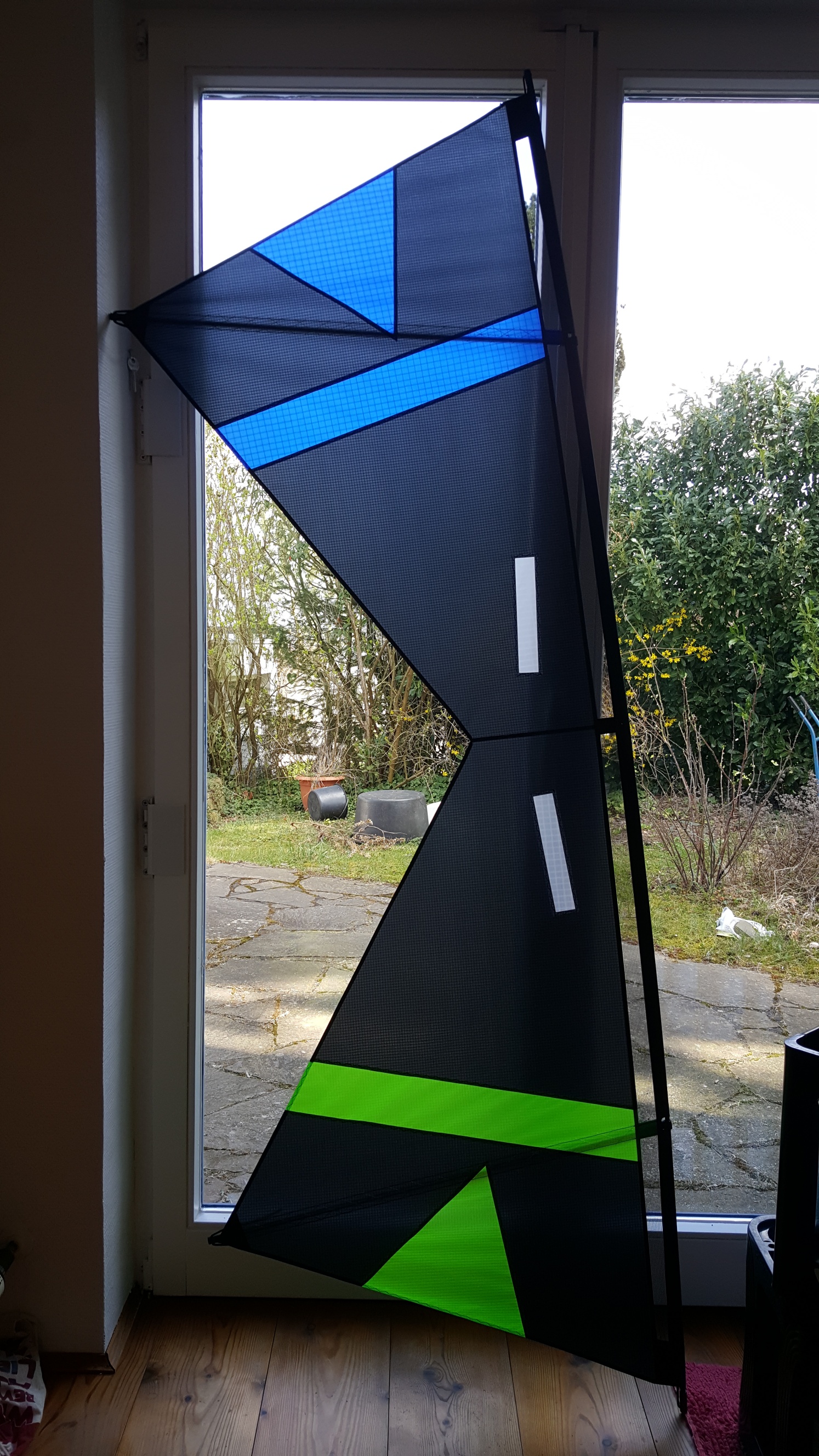Icarex geht natürlich auch, aber so groß würde ich nicht bauen, je größer desto weniger Wind verträgt er , und die Stäbe stehen bei Michael auch hinter dem Tuch . Wegen der Mittleren Waageschnur........